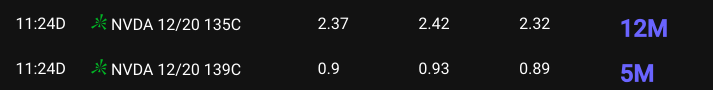 Nov 8 - TSLA 300c 2.25 → 28 ($2250 → $28000)
