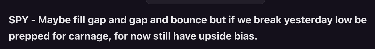 After yesterday, if I was a market maker I would bleed premium today and emotions are running hot. Worried about a chop day, but in theory watching dips for upside. If market is super fearful, we will see day 2 selling but at the moment, I don’t see it.