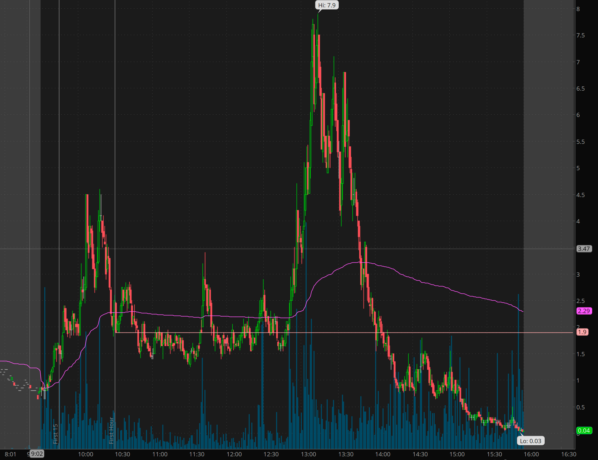 In the last 5 minutes I got filled. Sold 50% at 1.50-2 to pay for the risk and a short position I also took for the close. Then it was do or die. Well we got DO! with a close of 3.59. That is a 600% payout in 5 minutes!