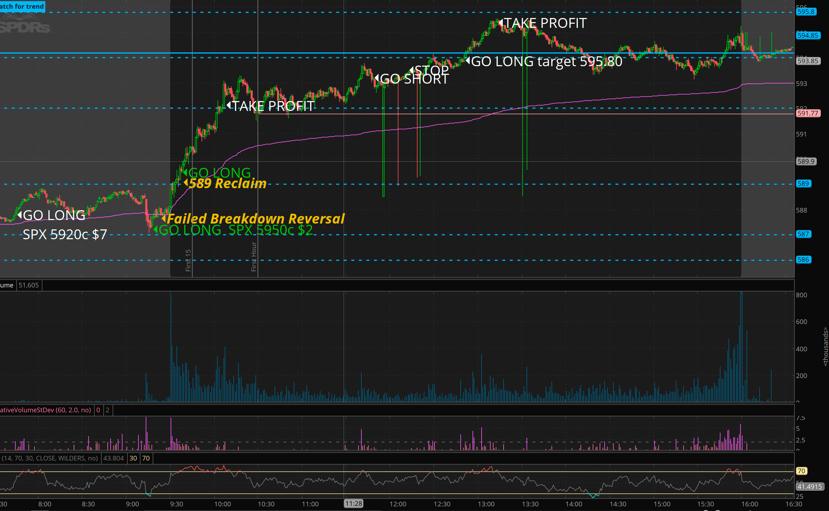 Trigger: failed breakout reversal of 592 + if we go green , short squeeze into 595.80+ cross of 592 coming.