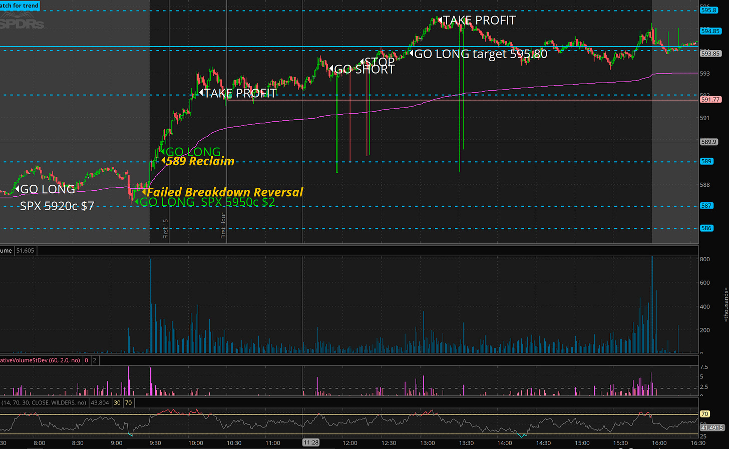 While I did alert that I expected 592 to come, and was waiting for that as a short, I should have alerted to members I had scooped SPX 5920c in premarket. Sorry guys.