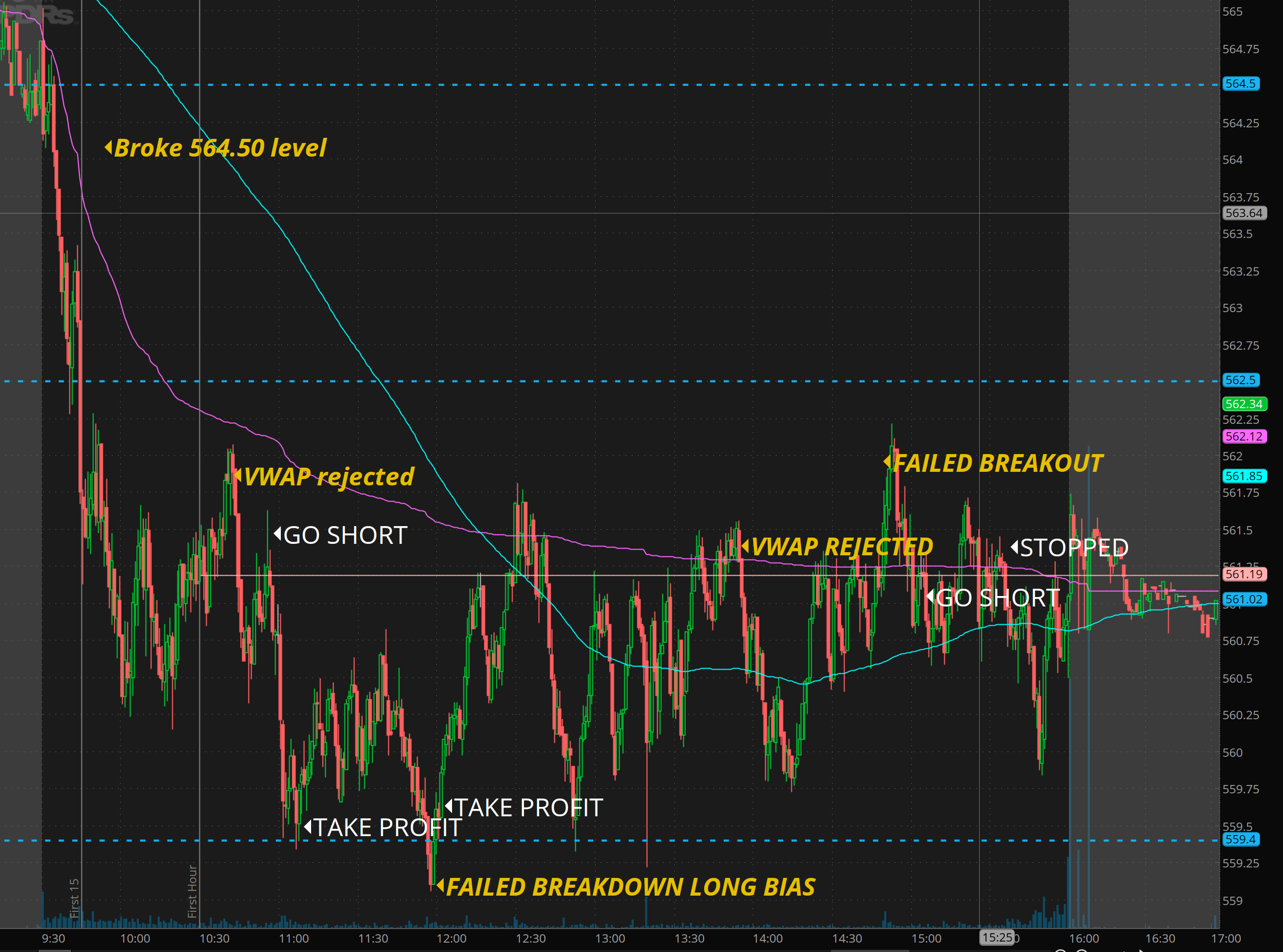 This was a bit harder but essentially get long at 559.50 for vwap and ideally and breakout over back toward 562.50-563.80.