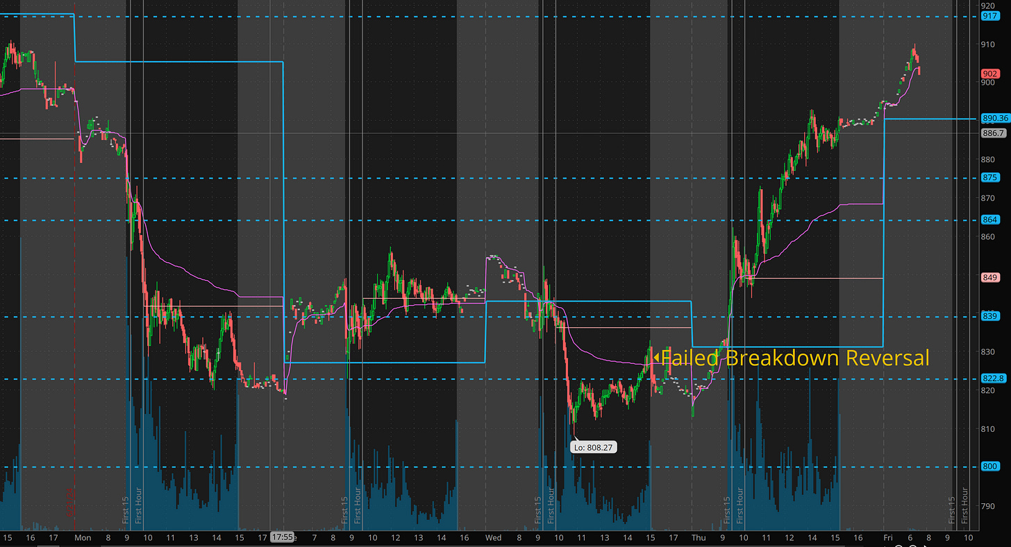 Yesterday I wrote I would be paying extra attention to chip names now that MU earnings is out of the way. Thursday, a failed breakdown reversal move developed and MU though it dipped was showing a little bit of strength so I decided I wanted it long out of the gate. Felt like a great risk reward. Though I should have taken 900c out of the gate, I chose 850c. Once the upside confirmation was in I also alerted 870c though my stop was too tight and I got stopped for $1 los anticipating the dip under 10:30 level to protect capital. But as soon as it reclaimed I jumped back in pay $1 more than my original entry. I wasn’t going to sweat $2 when I had over $10-30 of profit coming!