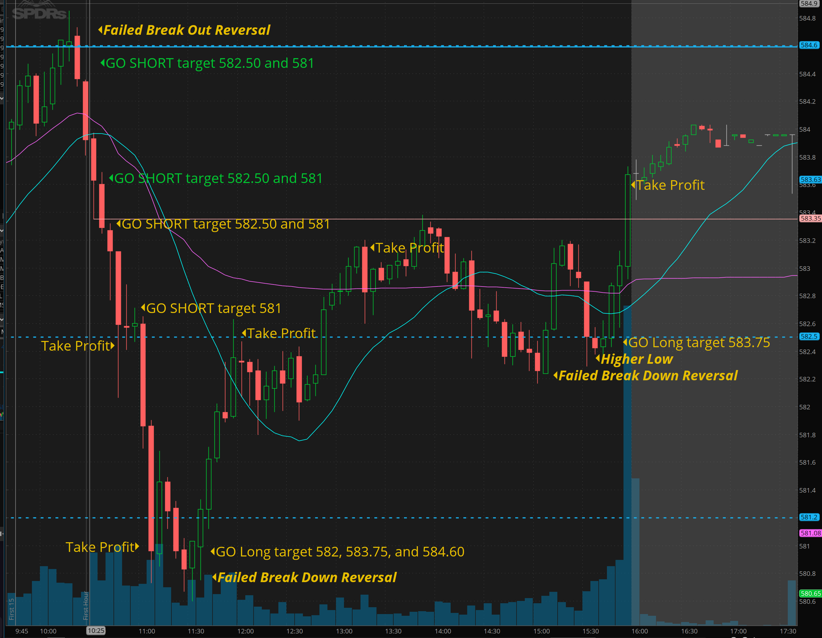 SPY tested 584 in after hours and has faded all premarket and tested yesterday’s lows at 580.60 .