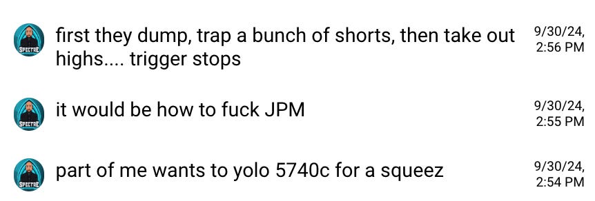 Sep 27 - SPX 5740p $2.50 → $14 ($2500 —> $14000 potential)