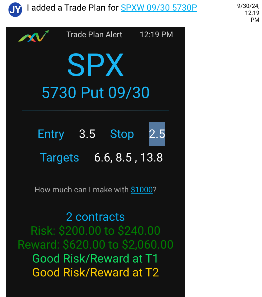 Sep 25 - SPX 5730c $1 —> 4.10 ($1000 —> $4100 potential)