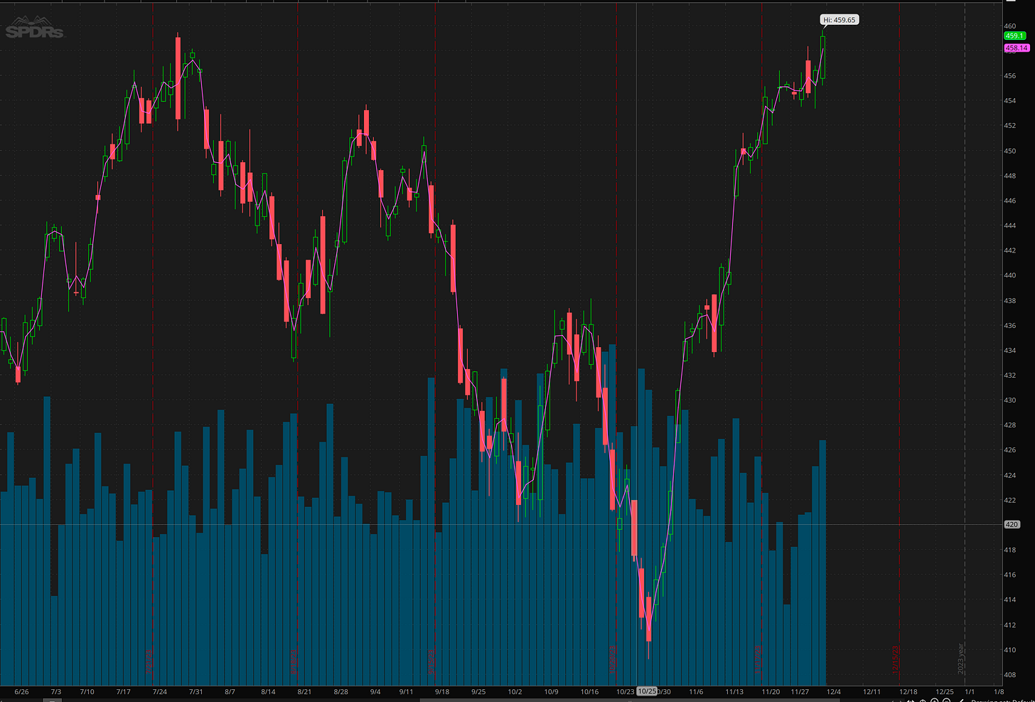 Monster November Rally, December kicked-off green, SPY Gap down while COIN and MSTR rally