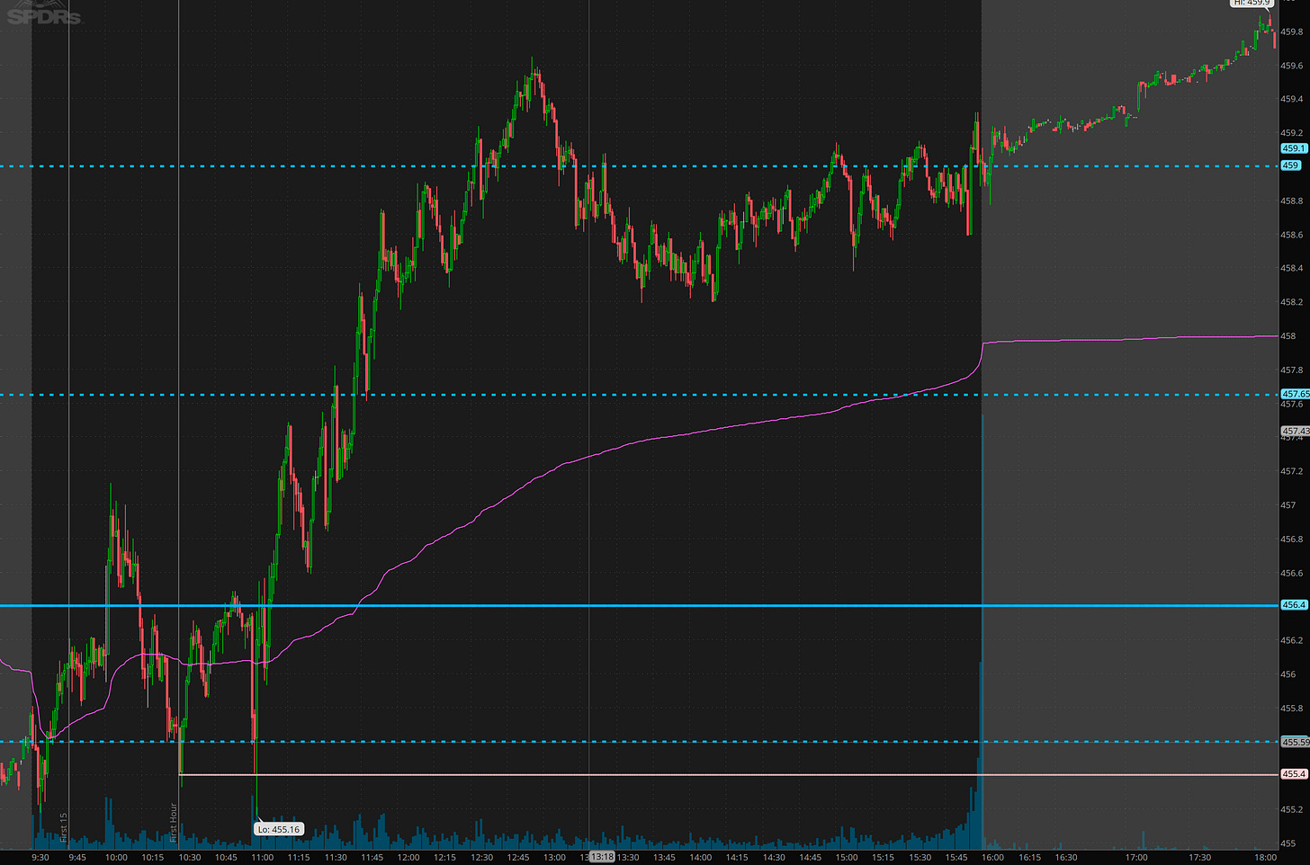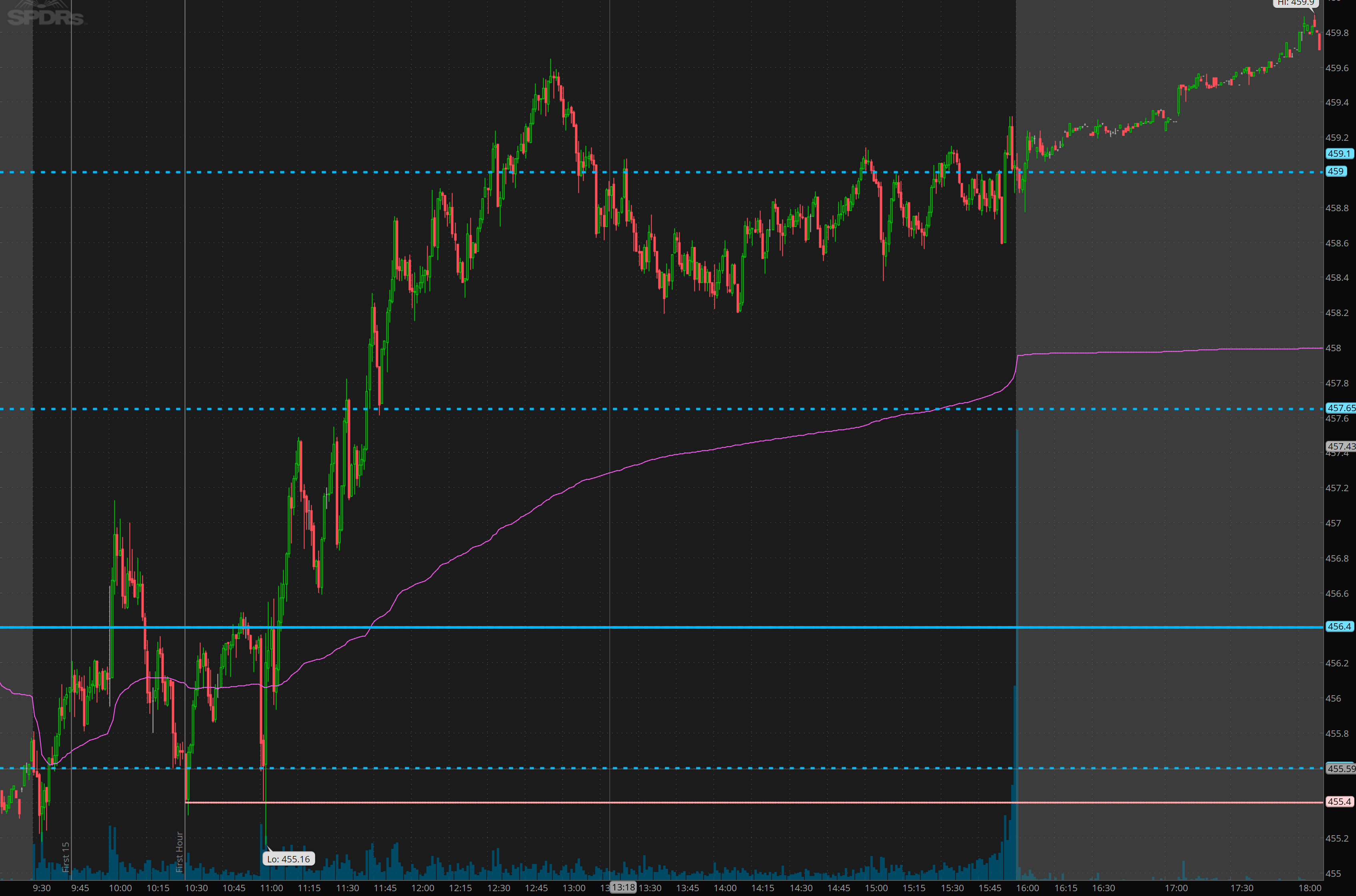 So ideally SPY dips into 457 on the open and then we get rally back toward 460. Overall looking for 461-464 this week to to come.