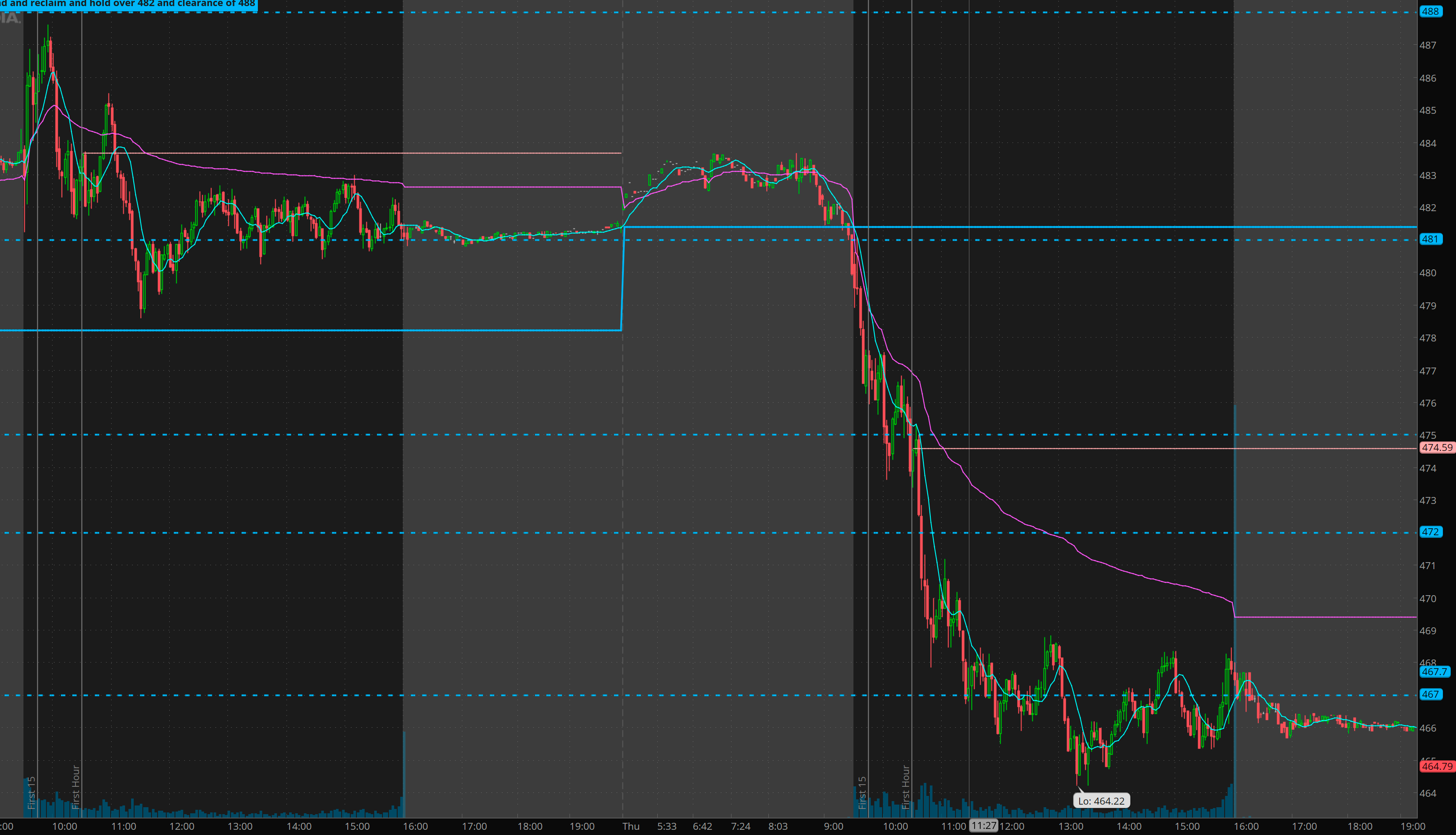 I started of getting short out of the gate yesterday given the premarket action after PCE numbers. I was spot on regarding seeing 465.50 rejected. We then dipped into the 453-454 zone.
