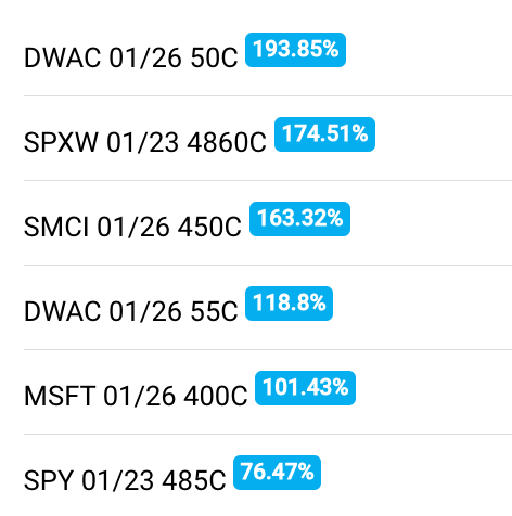 No surprises here that the gains were only 100-200% given the consolidation day.