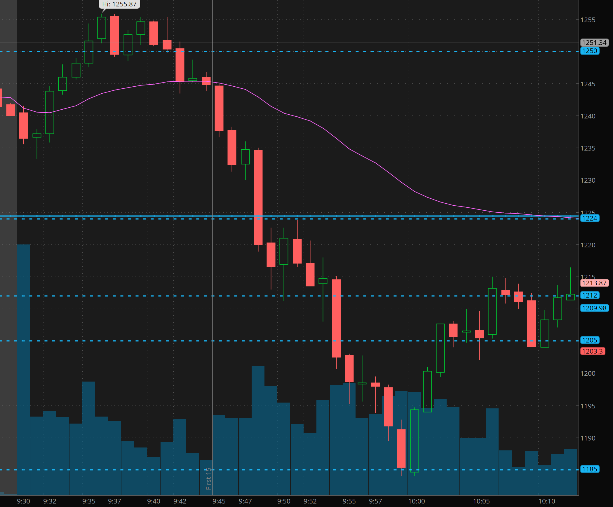 I had made a plan for an morning dip into 1200 for a possible long, and a possible 1260 rejection to get short. I also wasn’t planning to open a trade until after 10:30, however…. the price action said otherwise.