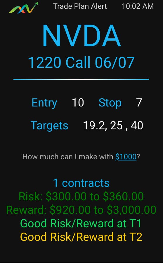 June 6 - NVDA 1220c $12 —> ($1200 —> $2100 potential)