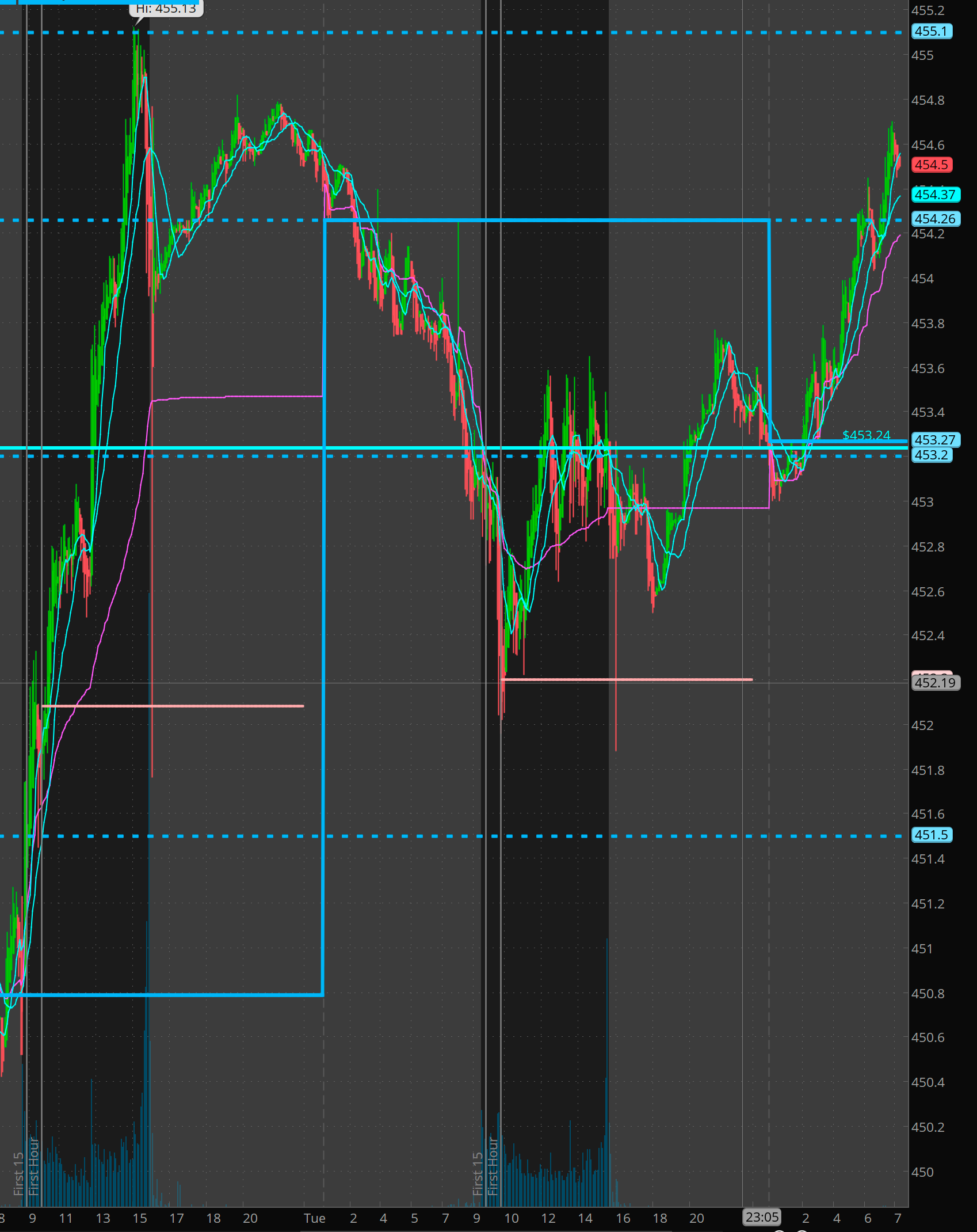 So SPY bull scenario, dip and rip off 453.50 targeting 455-456.