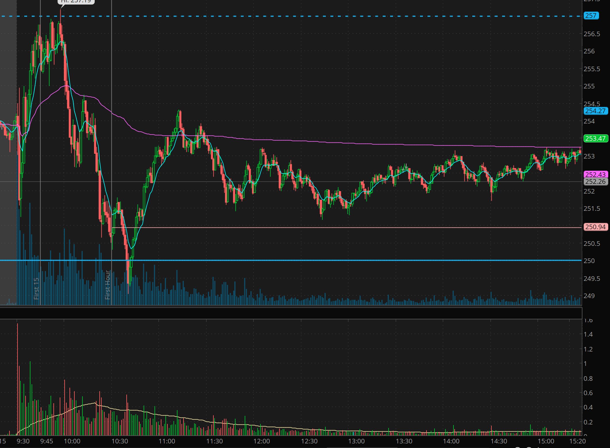 TSLA ripped perfectly to 257 for the exits and a short entry and dipped down to 250 for a relong!
