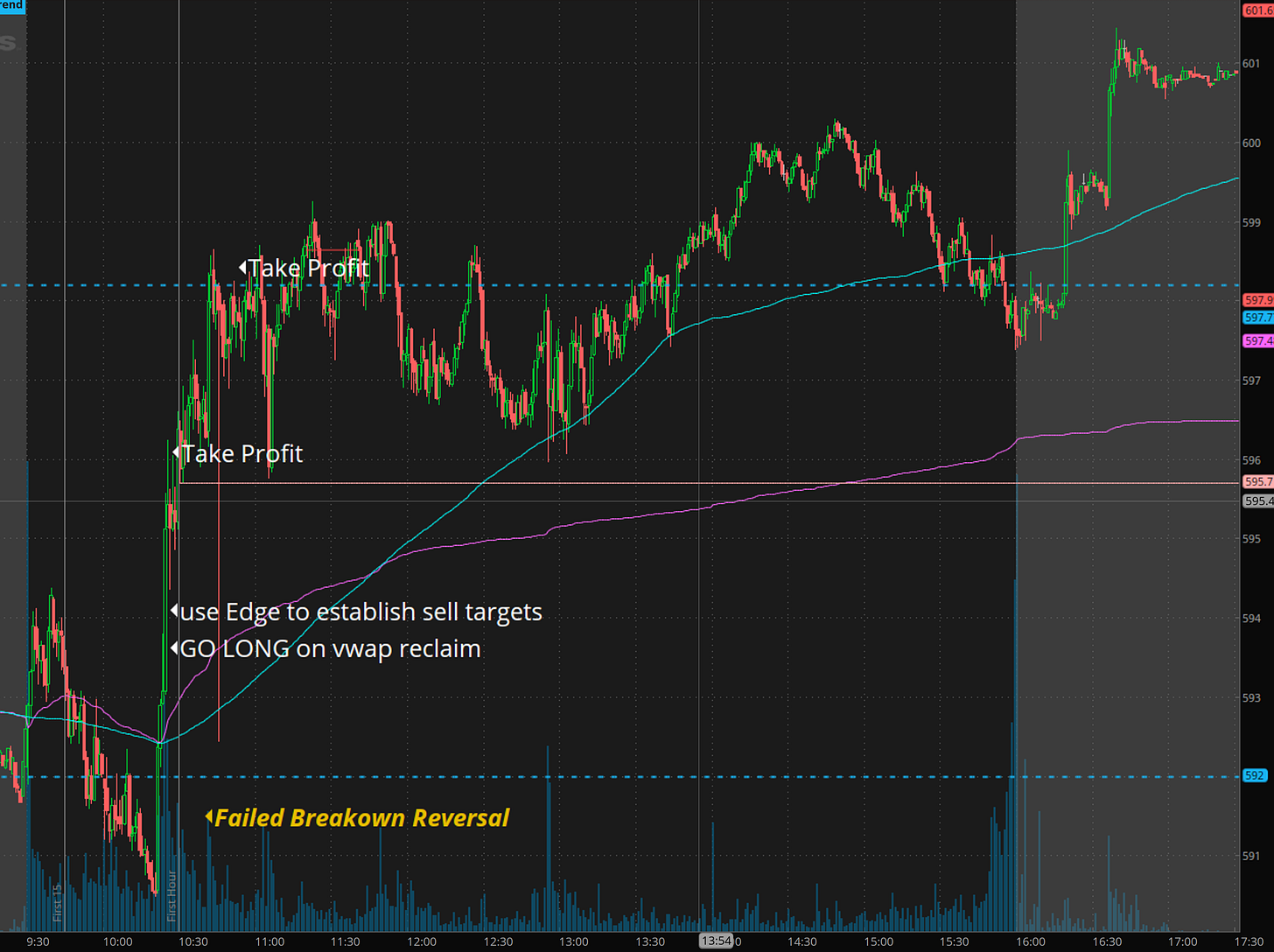 SPY - gap down reversal and reclaim on the 592 level leading to a rally to 600!