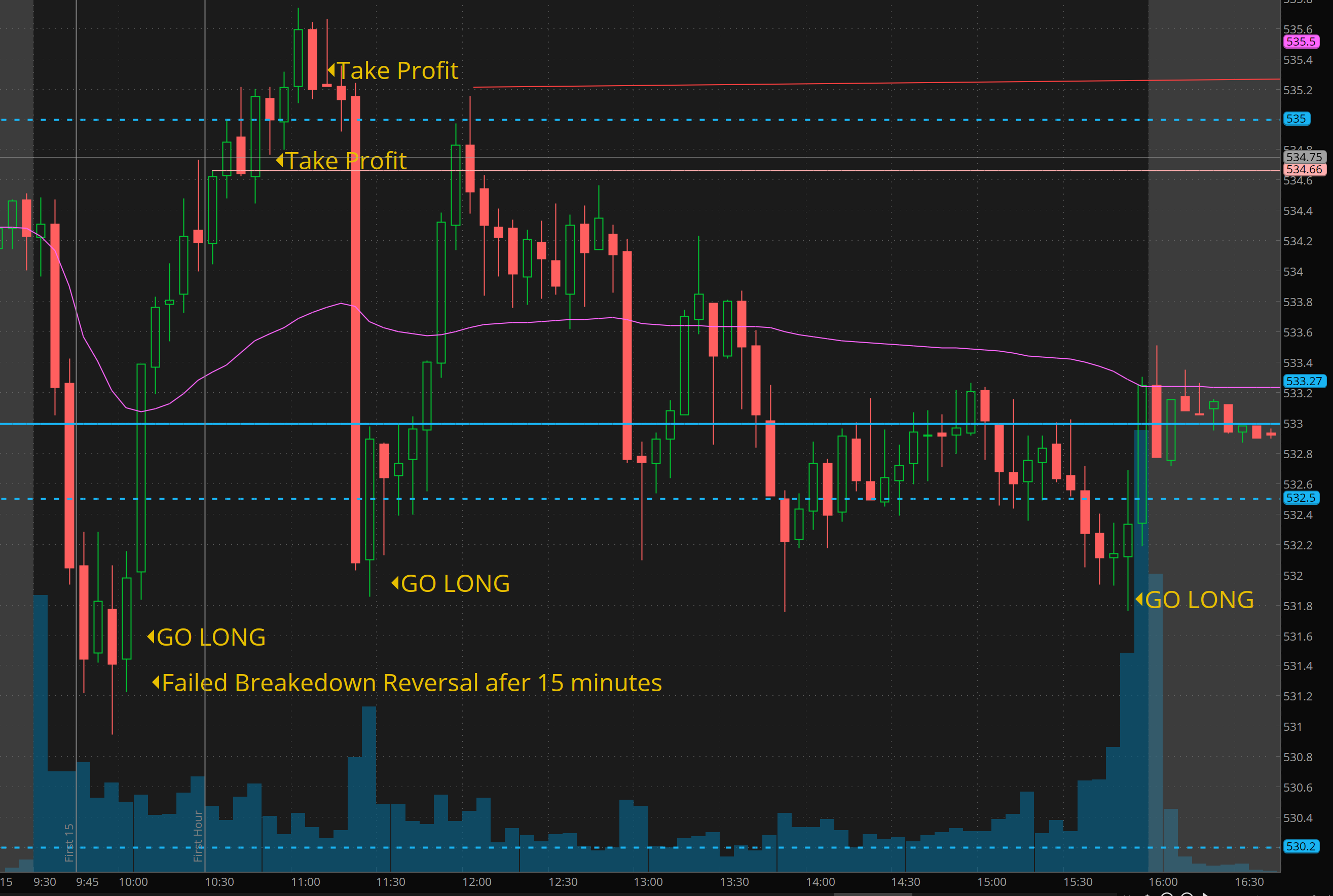 After 11, we had a nasty drop right back into 532 support. so got long again for small gains as it ripped back to the 10:30 levels and took profits on the stalling.