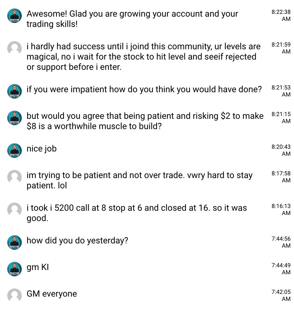 NOTE: screenshots from chat are from Edge Trade Planner. A platform available to THT PRO members. Join Us for live commentary and planning. Note my goal is to actively trade less than 2 hours a day finding 1 to 4 great trades a day.