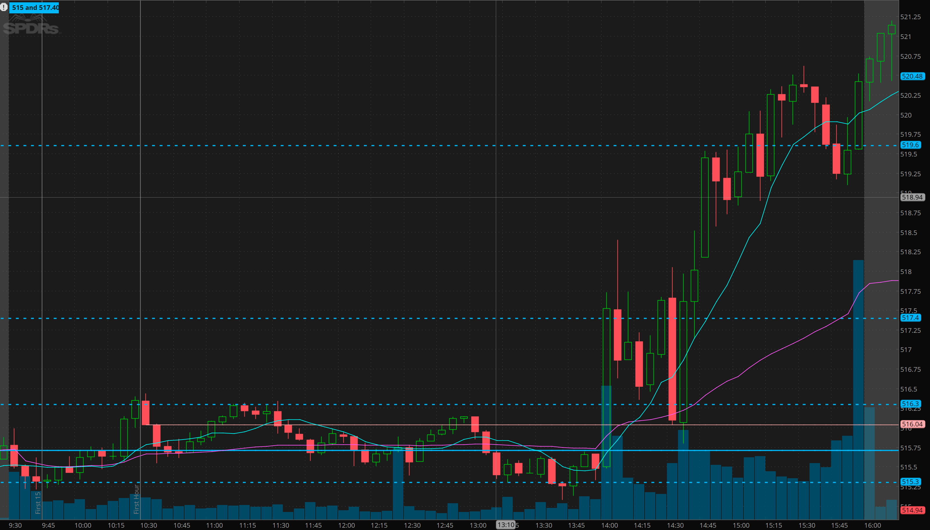 I said wait for 2:30 yesterday morning. at 2:30 vwap test and back test of the 516.30 breakout happened. This is your best risk/reward entry! with least probably chance of chop/headache targeting a 2 level move at 519+