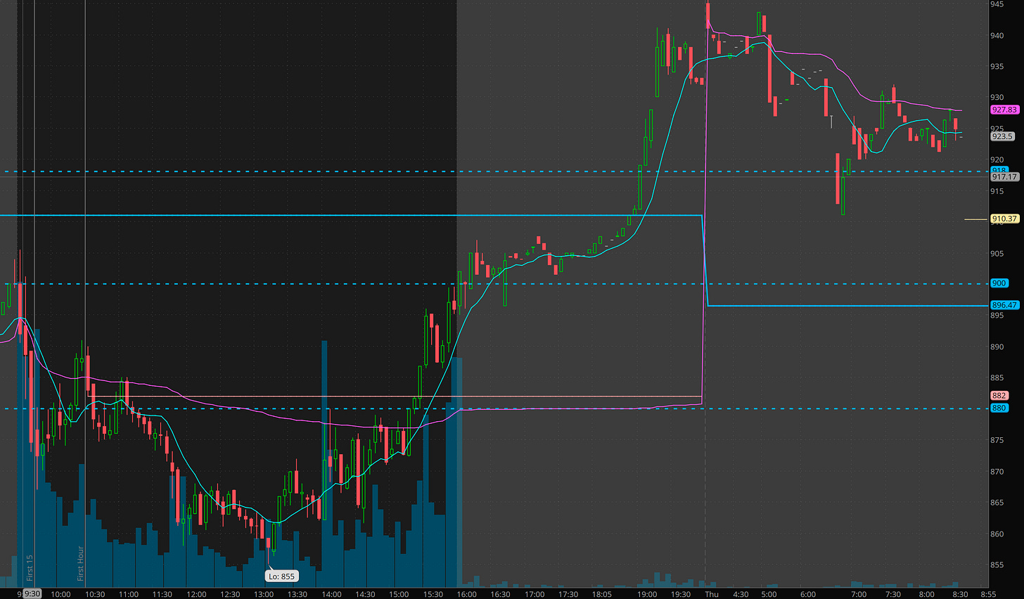 Earlier this week I wrote that SMCI 850-900 is likely the buy zone for swings. Yesterday it dipped to 855 and reversed. The key here was to watch for the reclaim of 875 which was the pricing of the offering.
