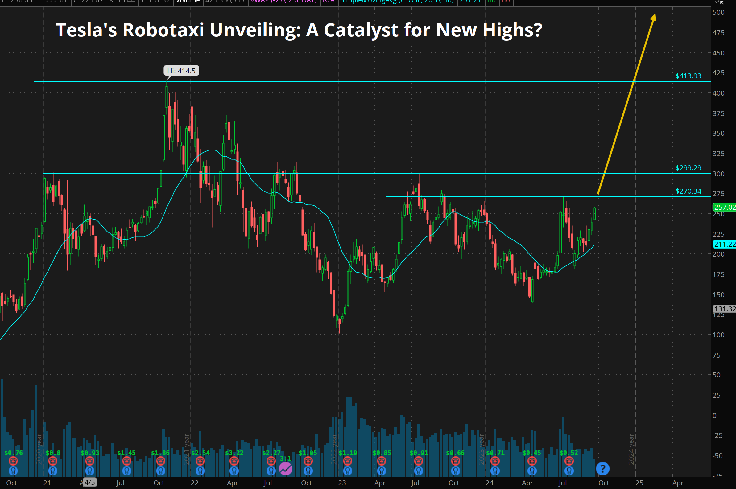 If Tesla unveils a groundbreaking advancement in robot technology on October 10th, this could be a major catalyst for the stock. While some may dismiss Musk’s tweets as part of his marketing genius, history shows us that when Musk teases something big, it’s often worth paying attention.