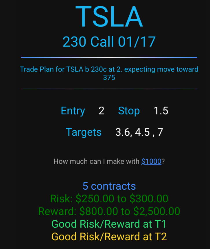 2024-01-15 TSLA 430c $3-4 → $8.20 ($3500 to $8200 potential)