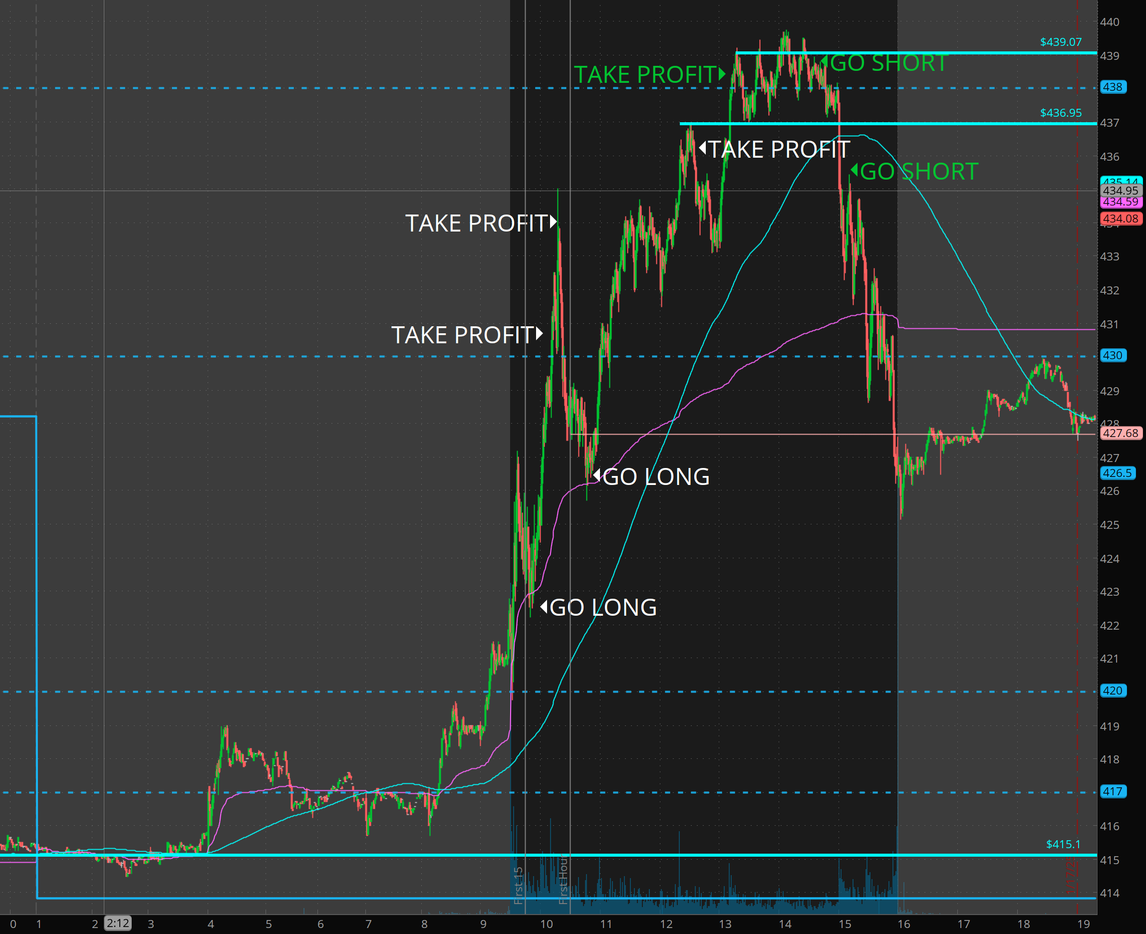 TSLA - Was our big payer. We nailed the trade and TSLA loved the levels. These reached over $9! for 300%+ payout. The best part was we nailed the reload opportunity when it pushed to 5 and dipped back at 2.30 before going to 8+
