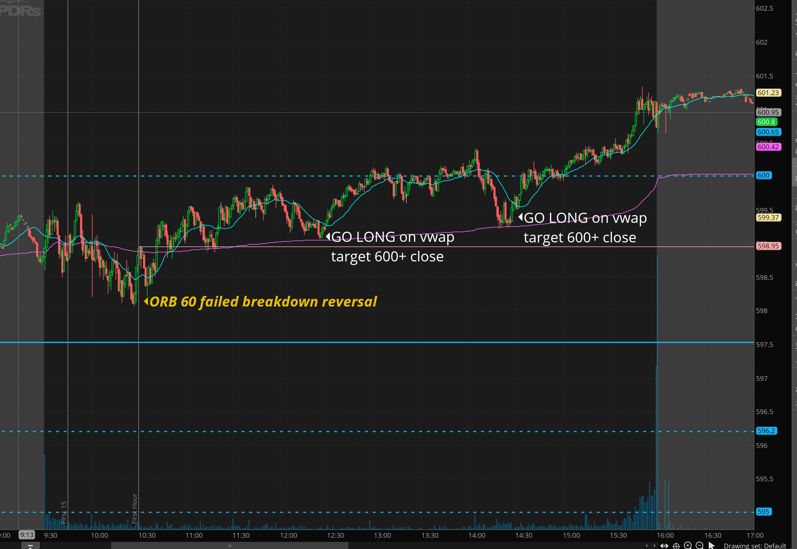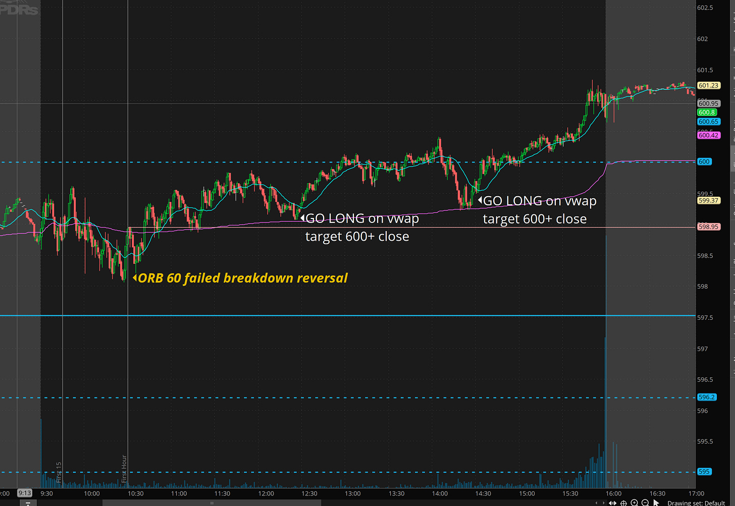 SPY - Given the dip to 595 the day before after a gap up and fill, it dipped during first hour and then started a slow painful grind to 600+. my target was 601.70 we got to 601.33. Nice scoops on SPX 6020c for 0.30-0.50 that ran to $5!