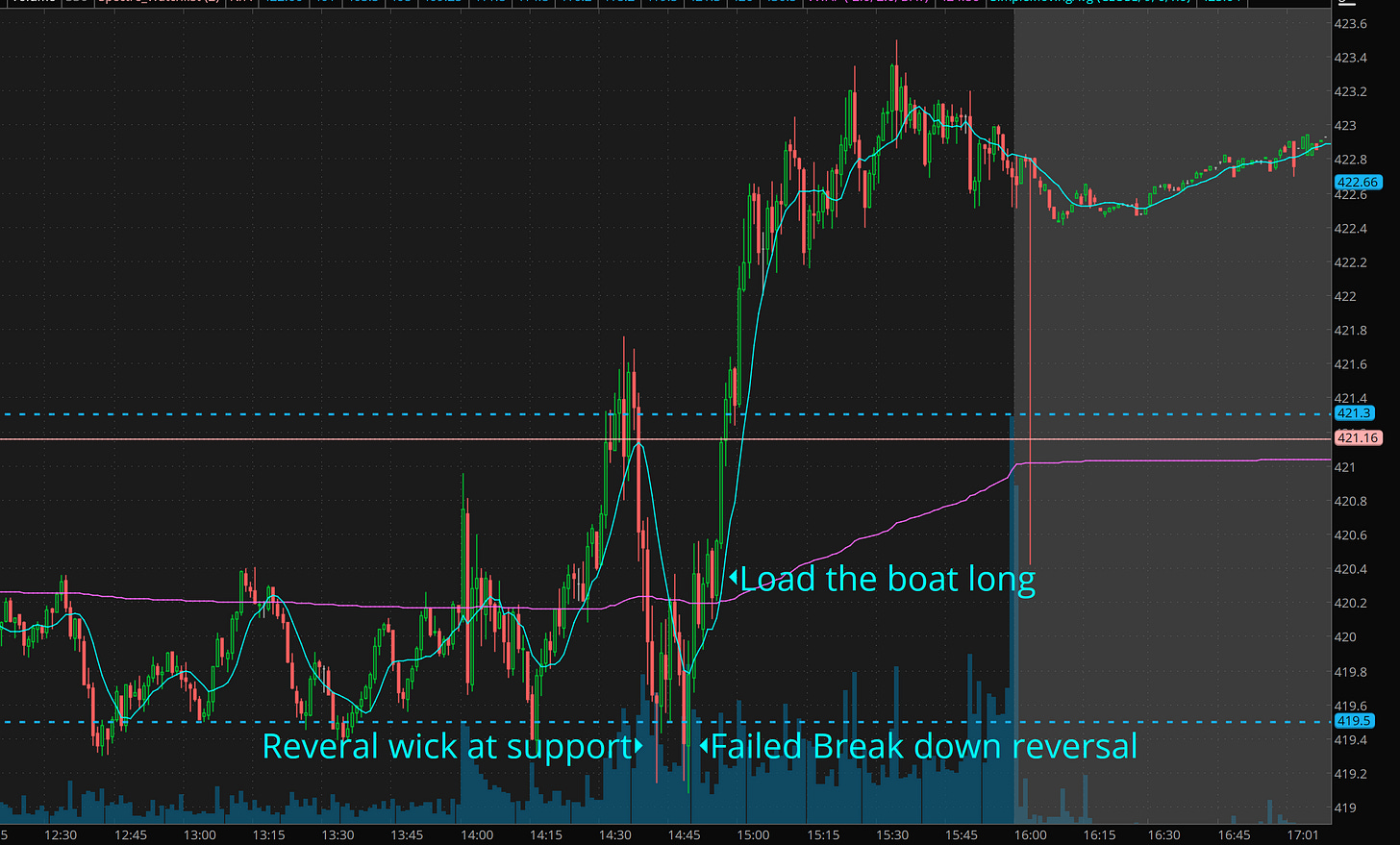 Yesterday thanks to the many likes, I blogged about how I was looking for 3 scenarios to play out after FOMC with a bullish bias. I didn’t get the deep dip I really wanted to get long, but I did get the failed breakdown setup to get long and the swing long trades from earlier this week are being rewarded.
