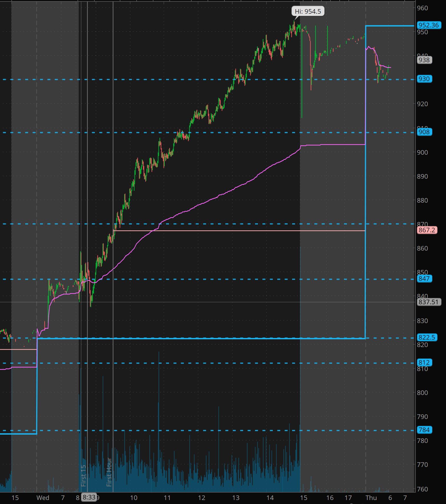 My target was 908 and 930, and I sold majority upon reaching these levels. Process-wise I sold a bunch at 870 level test and then reduce as each level above hit. Th reason for a 4 level move target is that historically when SMCI moves, it moves!