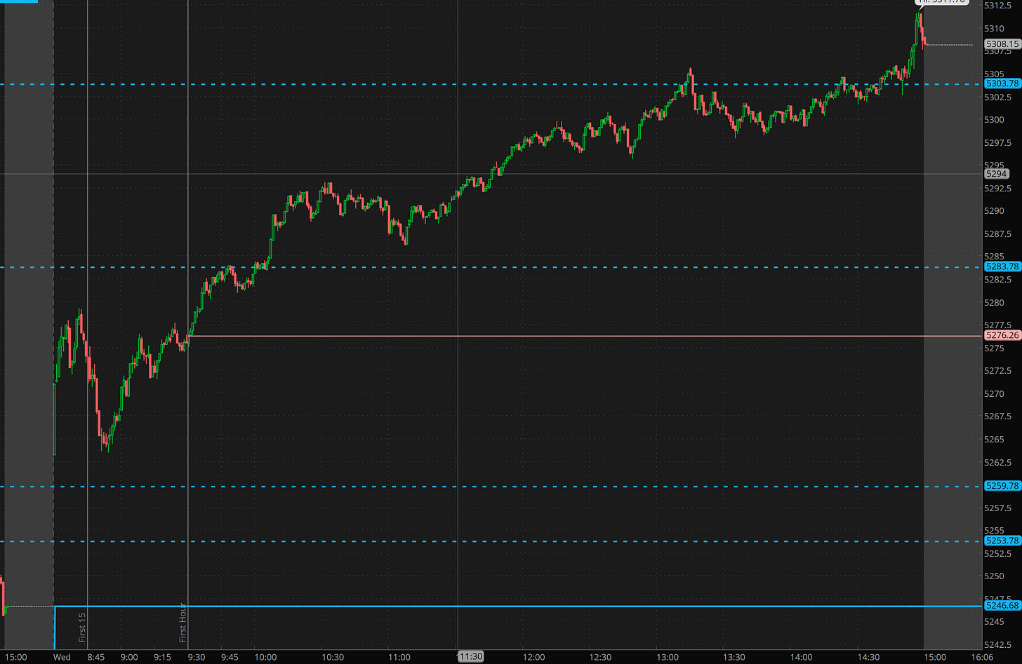 I wanted a dip into 524.50, and we only got a dip into 525 before breaking out higher. As such, I didn’t take any trades in SPX. I was already in SMCI calls, and there wasn’t a need. Biggest reason I didn’t take a trade was that since I didn’t get the setup I wanted, I left it alone.