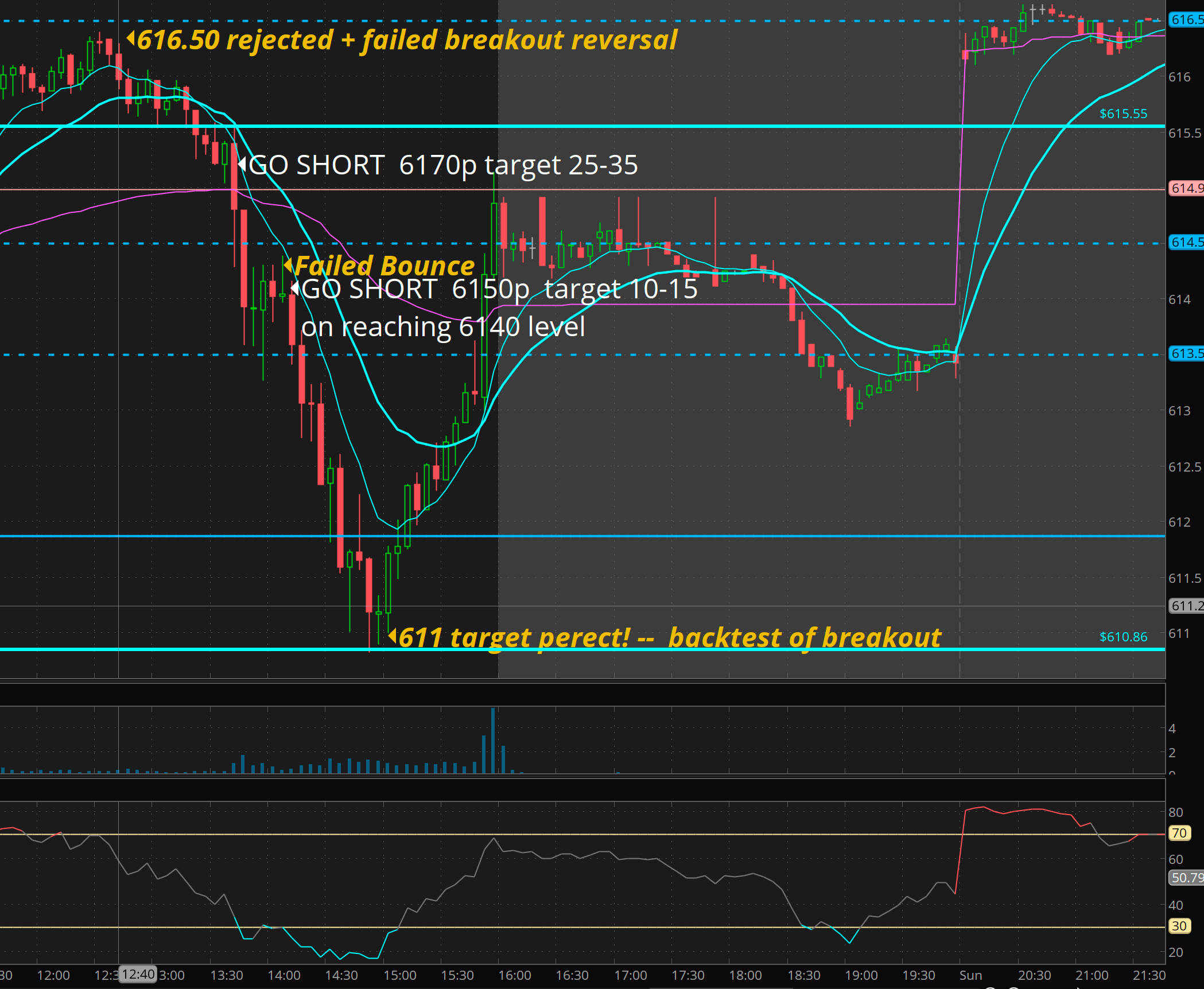 And I got on short on /ES and on 6150 and 6170 puts targetting 611.