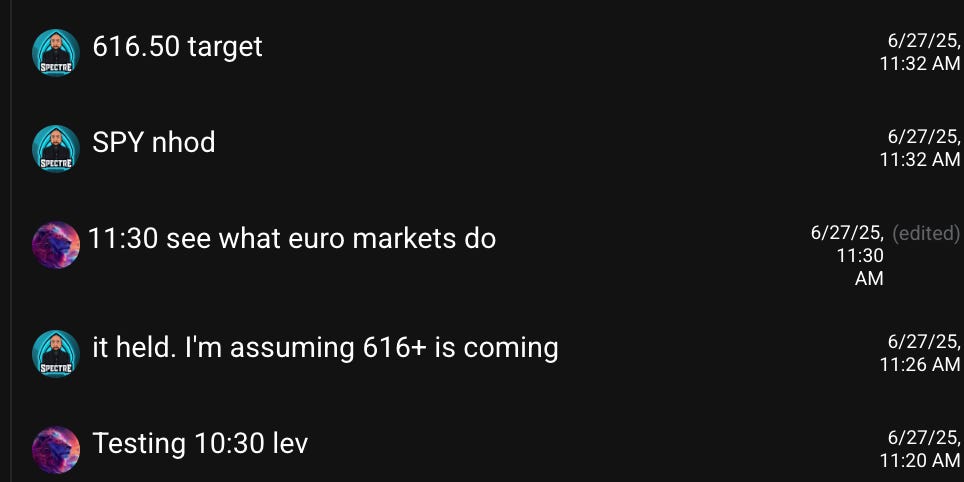 With the 616.50 rejection. How do we set the target? EASY - my levels do the work for you. We target 613.50 and 610.50 the level below, but experience told me to target 611. And that turned out to be spot on!