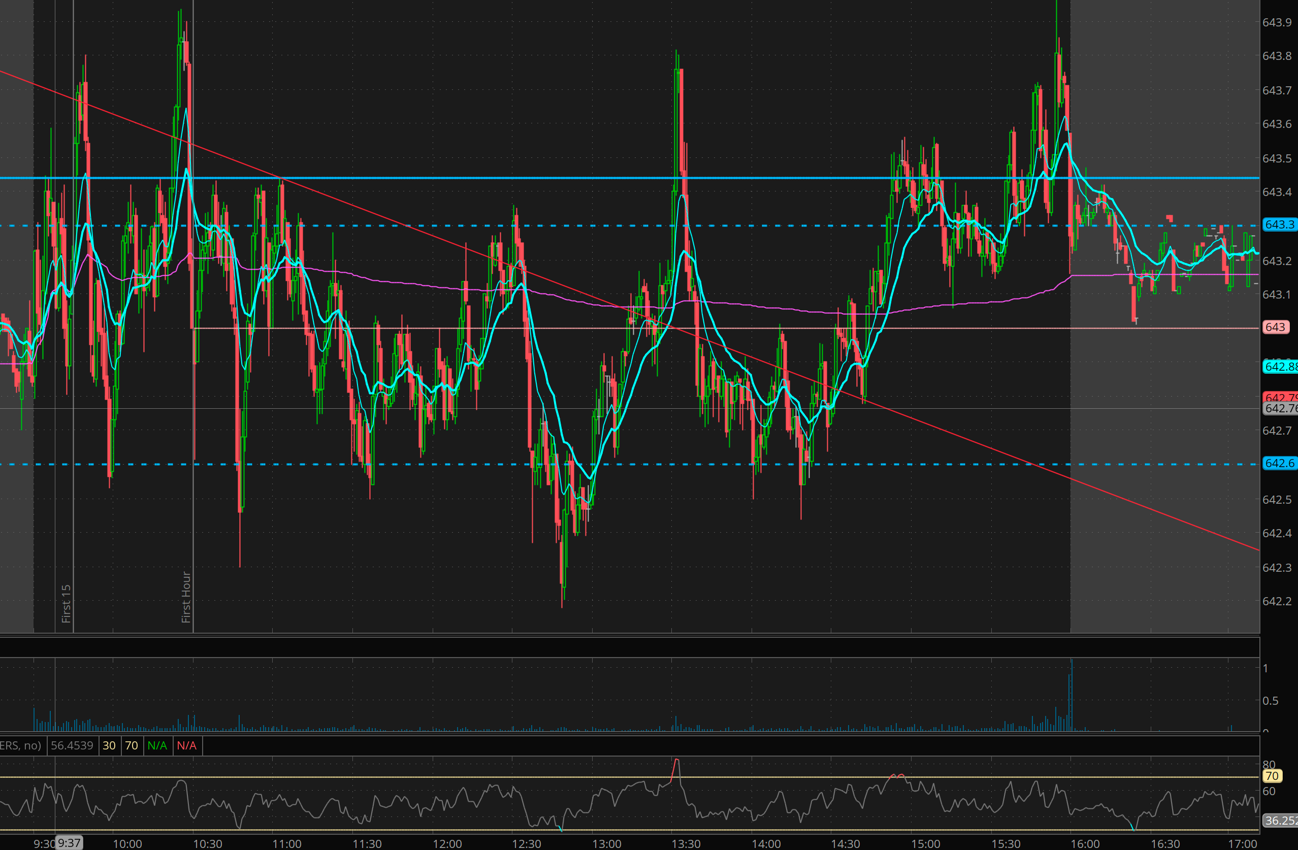 As you can see there were multiple dips at 642.60. so each dip under, need to buy SPX 6450c. I selected 6450c because that was first strike below high of day.