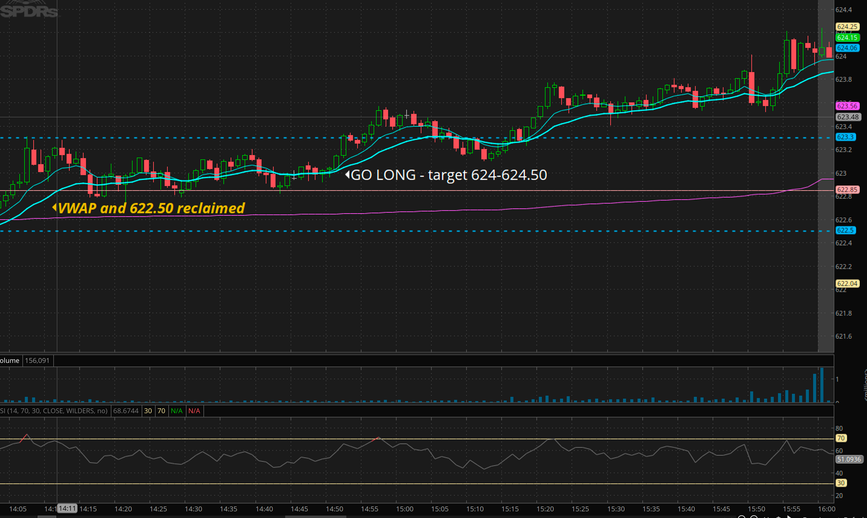 Join either on support test of morning lows or failed breakdown reversal at key level