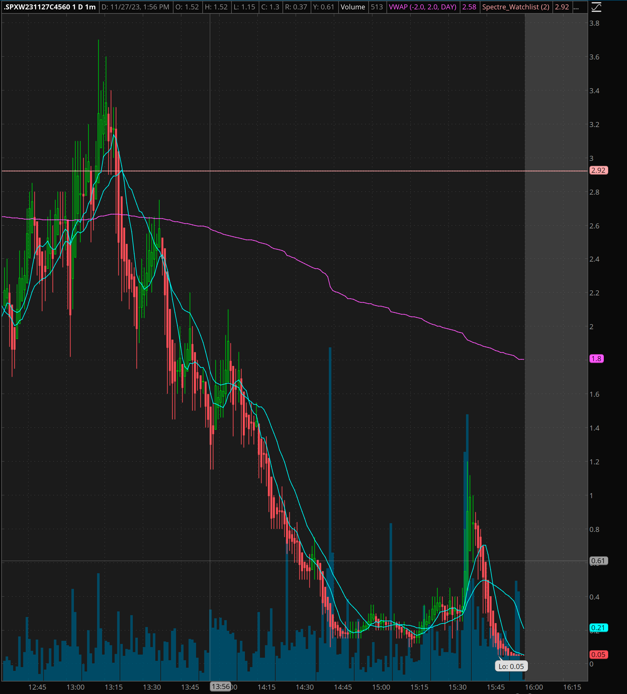I didn’t alert this, but I did also take a credit sell on SPX 4560/4565c on the spike in the afternoon/failed breakout. Let me show you the trade