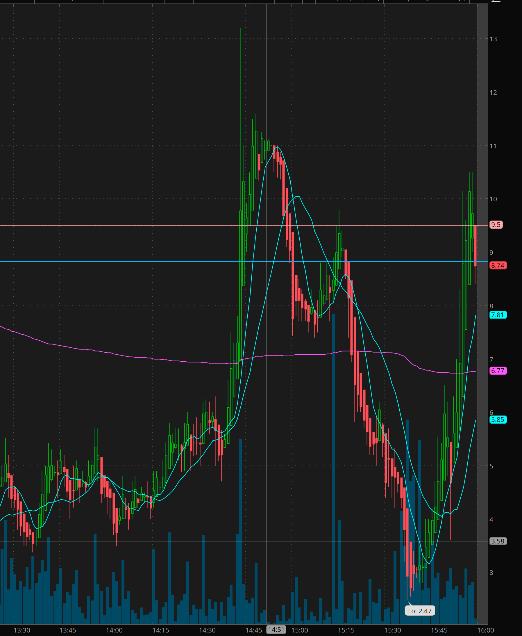 The puts would have gotten stopped if you held into close. However they also did spike to $12. But you had to nail/guess where to sell.