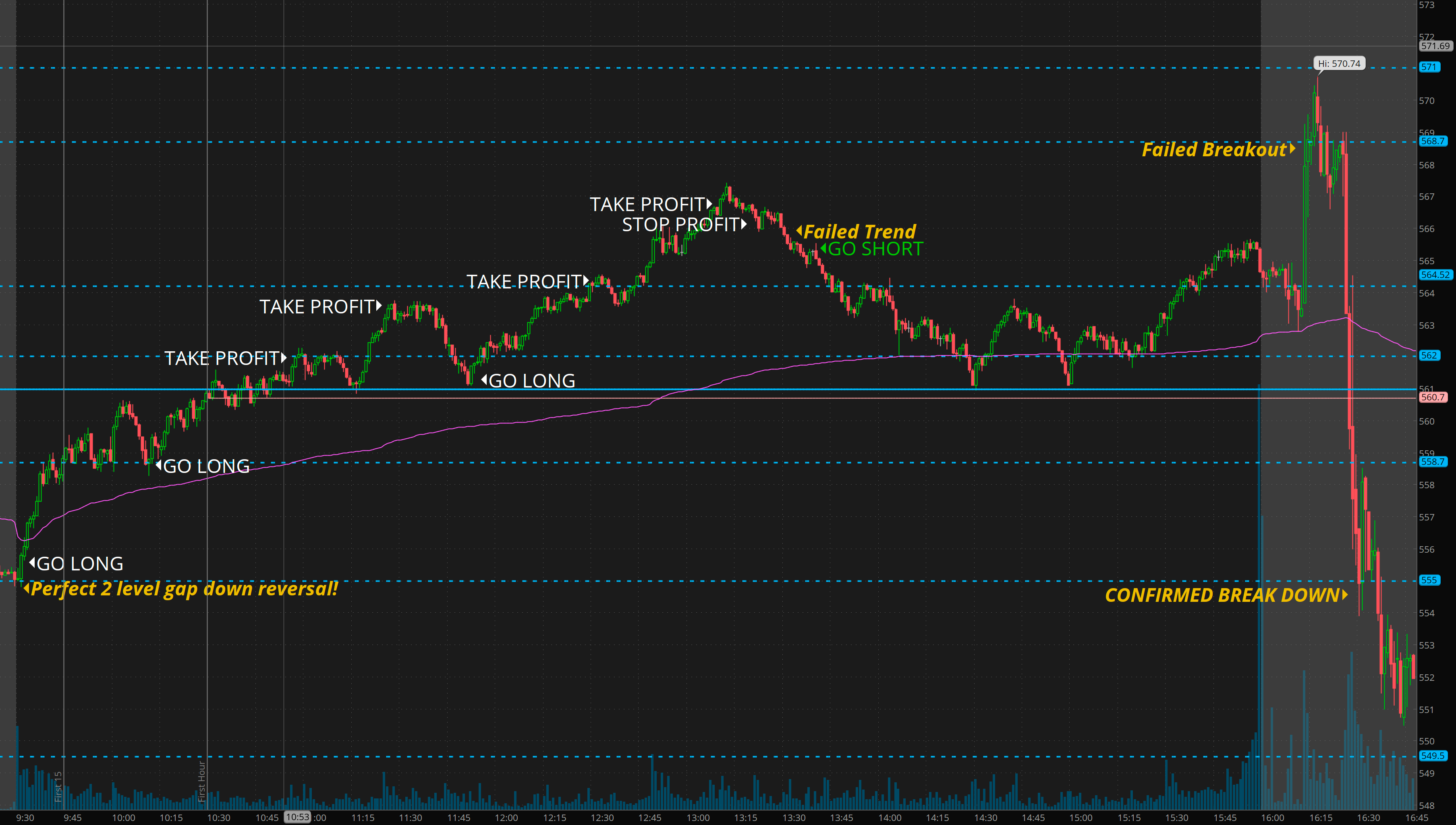 Missed short after SPY reject 567
