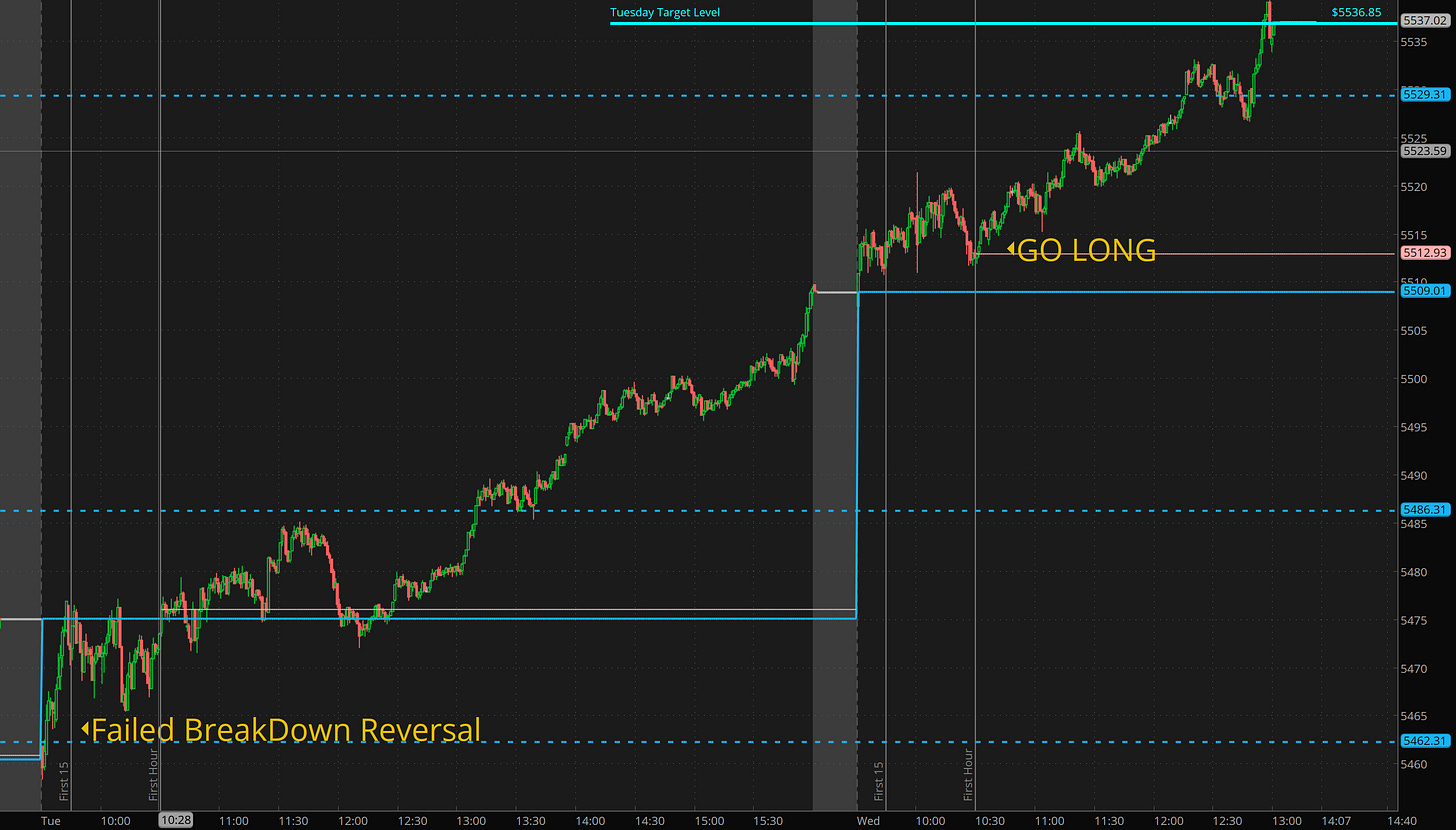 In today’s post I’m sharing a little more info. monday/Tuesday established failed break downs. then using process we want to target to levels above. that make 5530-5536 the target. 5536 being the 2 level move from the day before. I had kept a mental note of that.