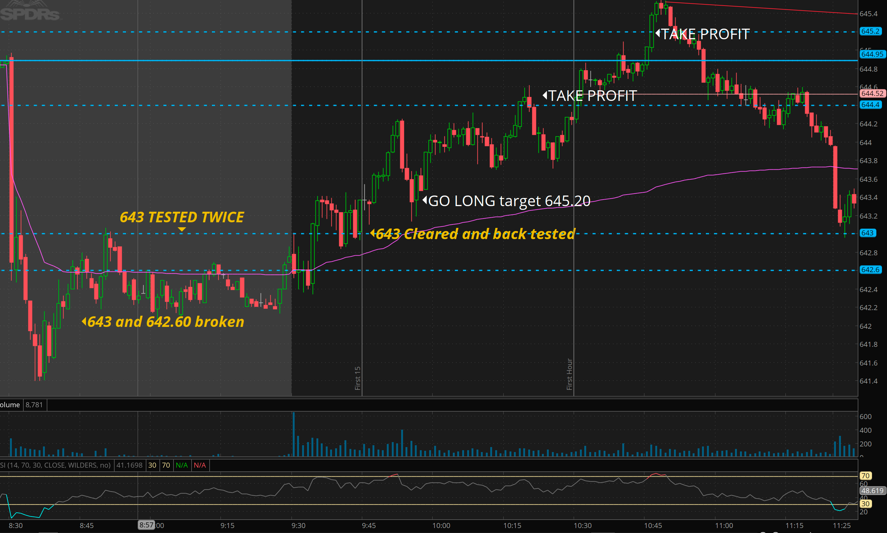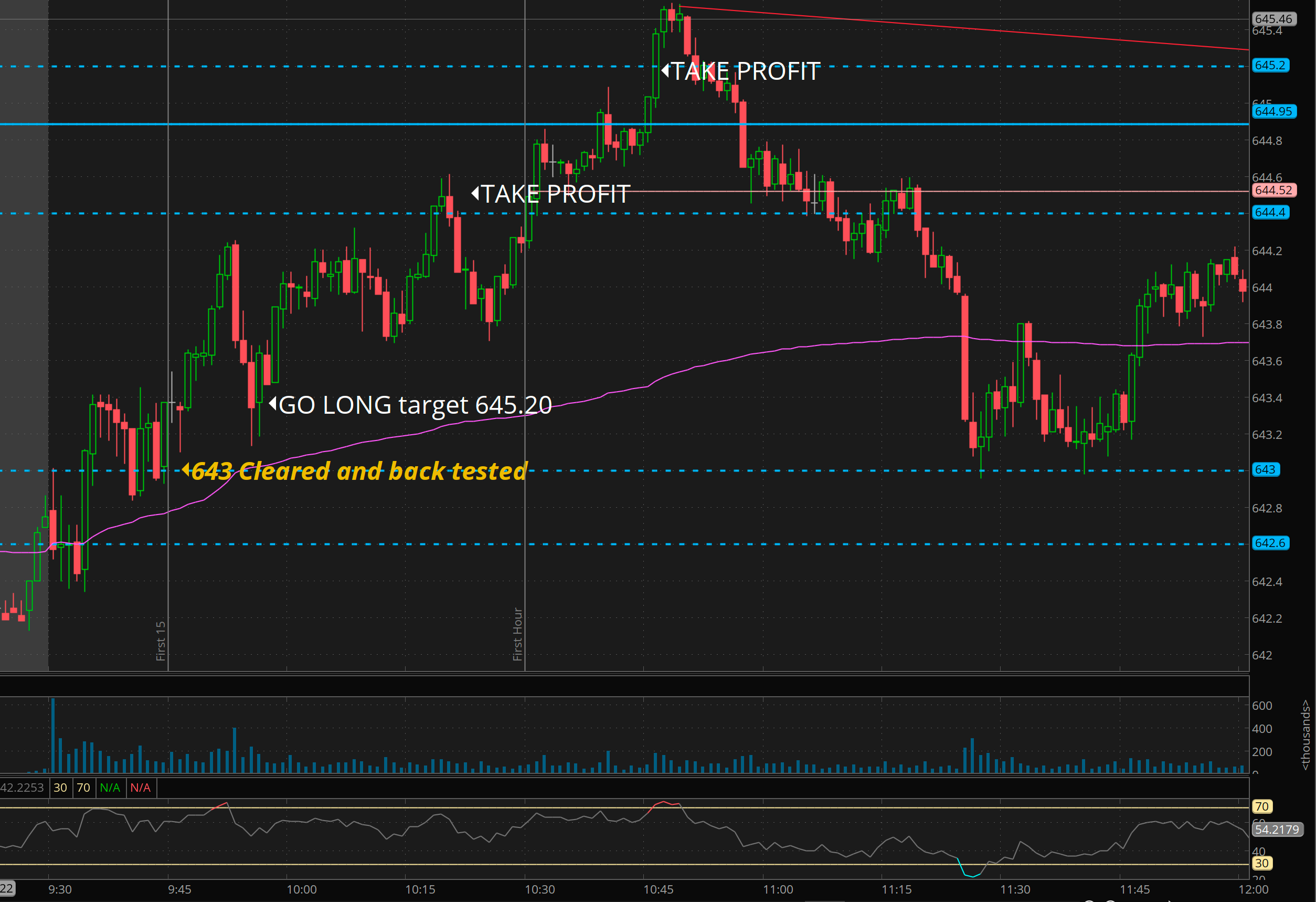 Yesterday I wrote… “If 643 can hold support we could get upside again”. We got exactly that! Why was that so important? Remember the failed breakdown reversal concept. Even though we gapped down in premarket, that 643 level was major support the day before.