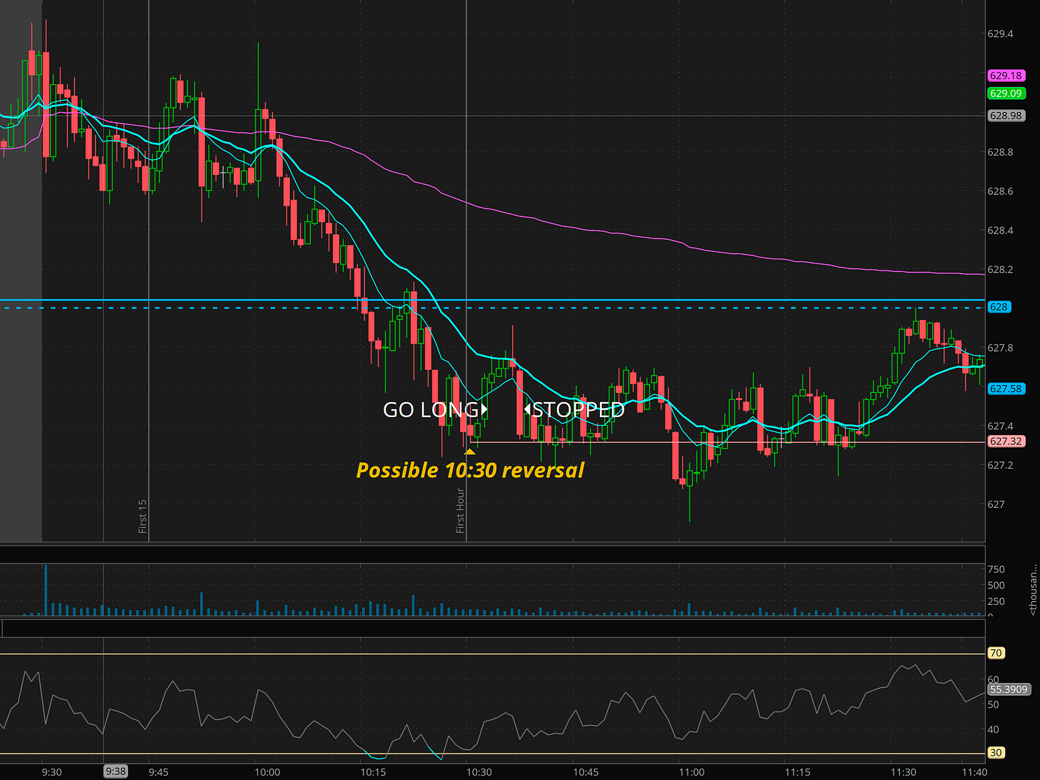 Morning trade setup - 10:30 reversal near 627