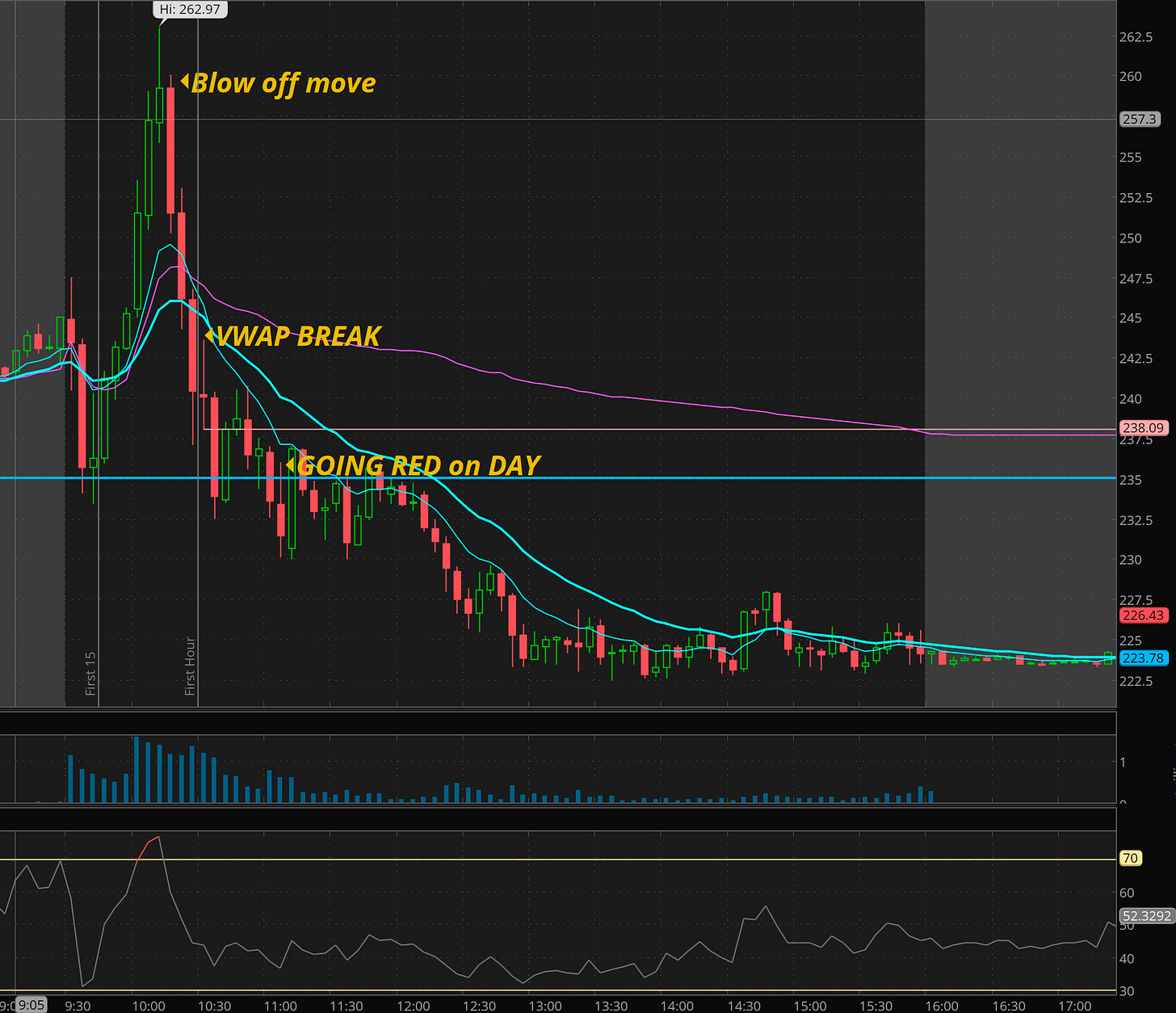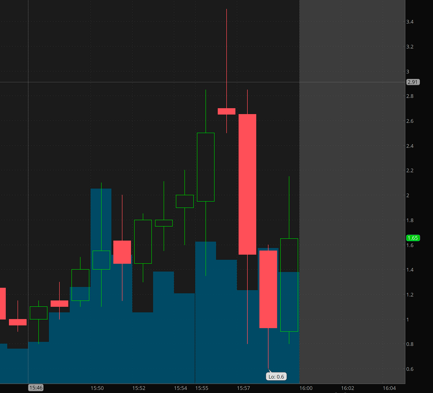 Later there was a failed breakdown reversal, but based on the action on Friday, I was not confident that a move to highs or higher or even a clearance of vwap would develop so I shifted my attention to other names.