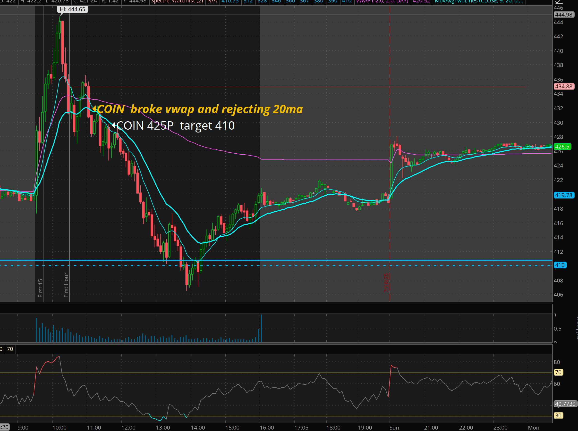 We consolidated all afternoon and give the support holds, I was convince we would get a vwap test by the close.