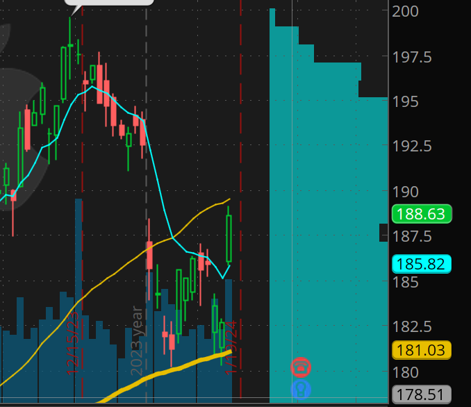 Wow! buying the 200d man was spot on. Earlier this week I took 185 calls round 0.50 targeting 190 as a swing. Why? 181 is 200dma, and if bounce we should see a fast move above 185.