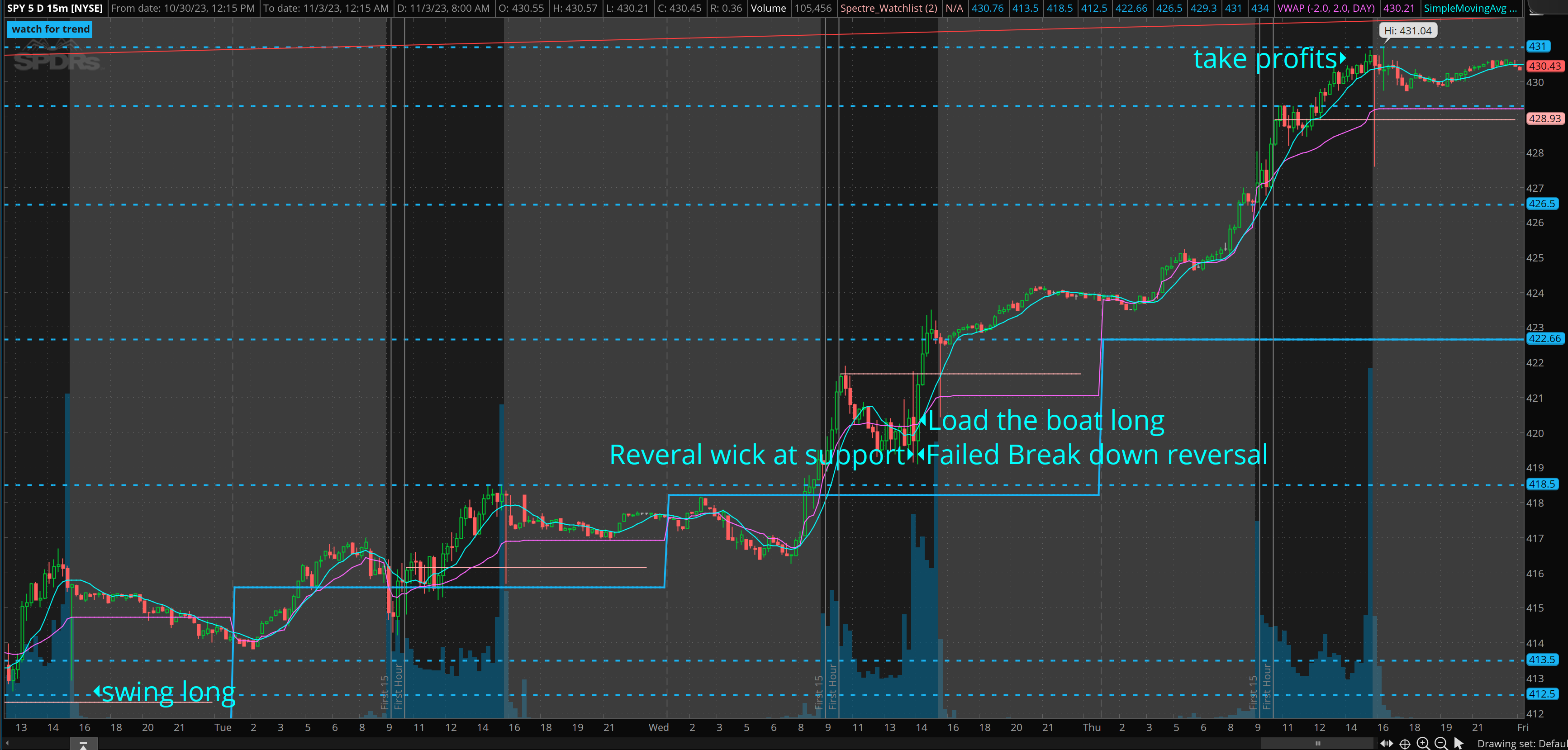 There were only 2 dips that lasted all of about 15minutes each. Very strong buying. 431-432 is the key level to imho to determine if we will be having a Christmas rally.