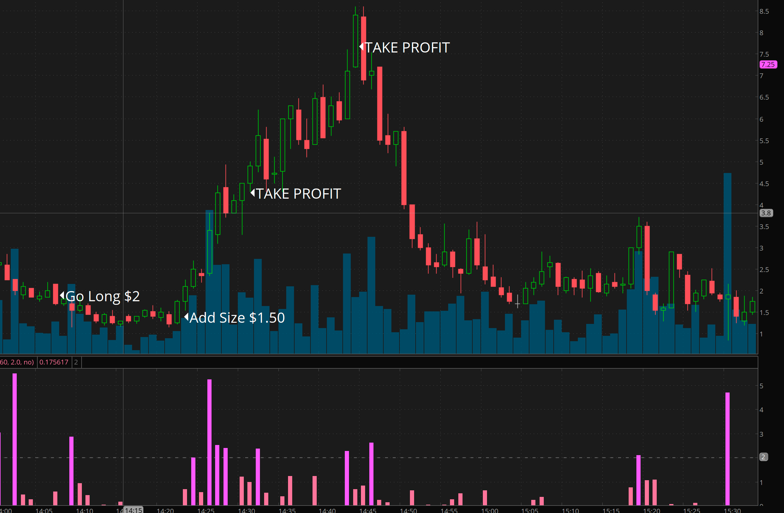 How do I take profits? I keep it relatively simple. Depending on the entry and range to the next levels I typically with take profits 50-100% of my profits at 3-10R and then raise stops to above entry with a goal of letting runners take me to the next level or 2 and to then reload if I believe we are consolidating before the next leg.