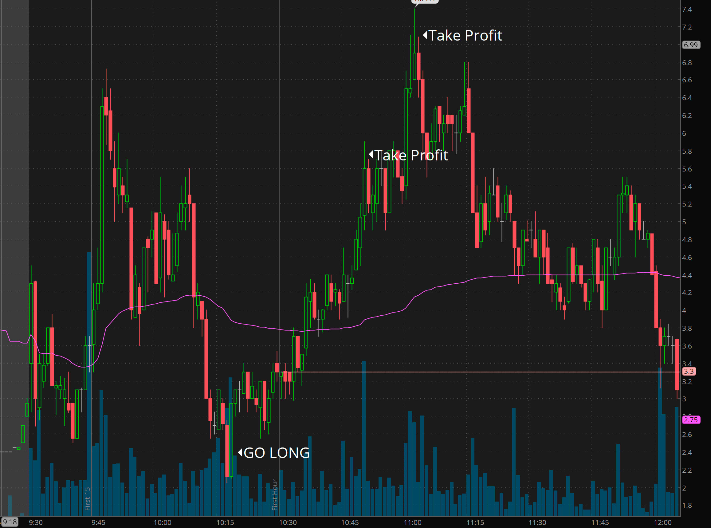 How do I take profits? I keep it relatively simple. Depending on the entry and range to the next levels I typically with take profits 50-100% of my profits at 3-10R and then raise stops to above entry with a goal of letting runners take me to the next level or 2 and to then reload if I believe we are consolidating before the next leg.