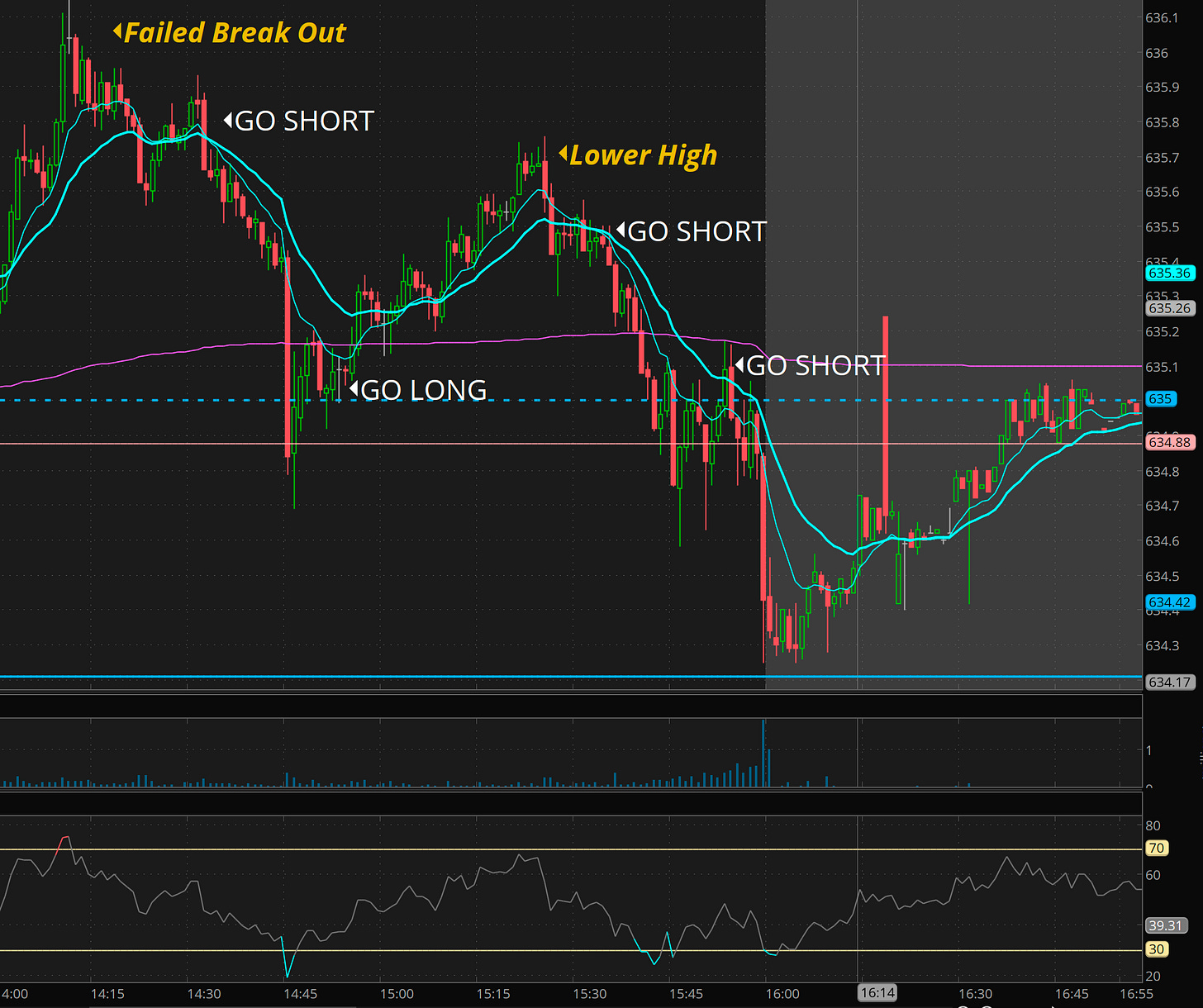 SPY pushed to new highs but didn’t get to the level above until after hours. Given the multiple moves and vwap crosses my plan was to only go long at support or at high of day resistance for a short.