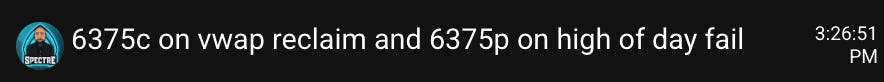 in last 5 minutes on the vwap reject I took SPX 6370p for 1 and 1.50. I was targeting 6367 or less to come. it got to 6364. so hit $6!!! I was out at $4 on high probability 300% gainer!