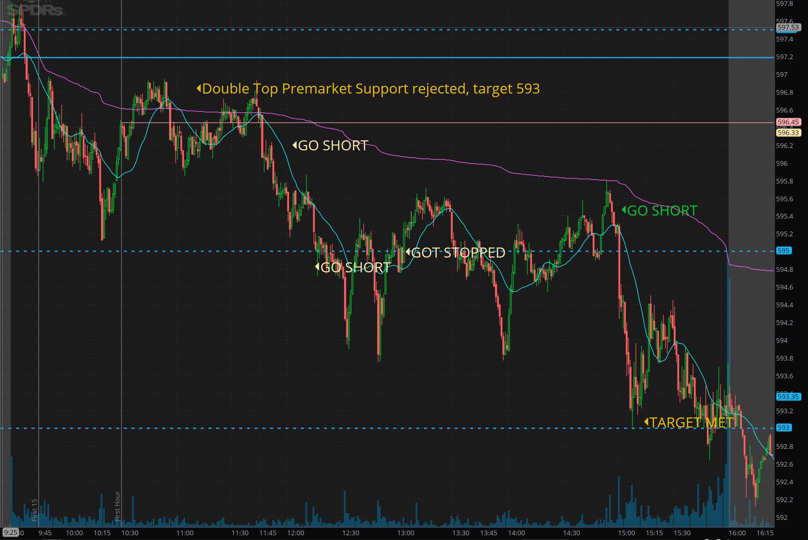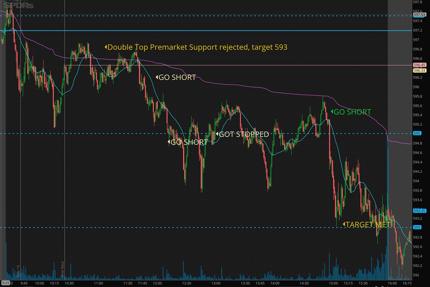 SPY - super choppy action while it was working its way to 593 after rejecting 597.50