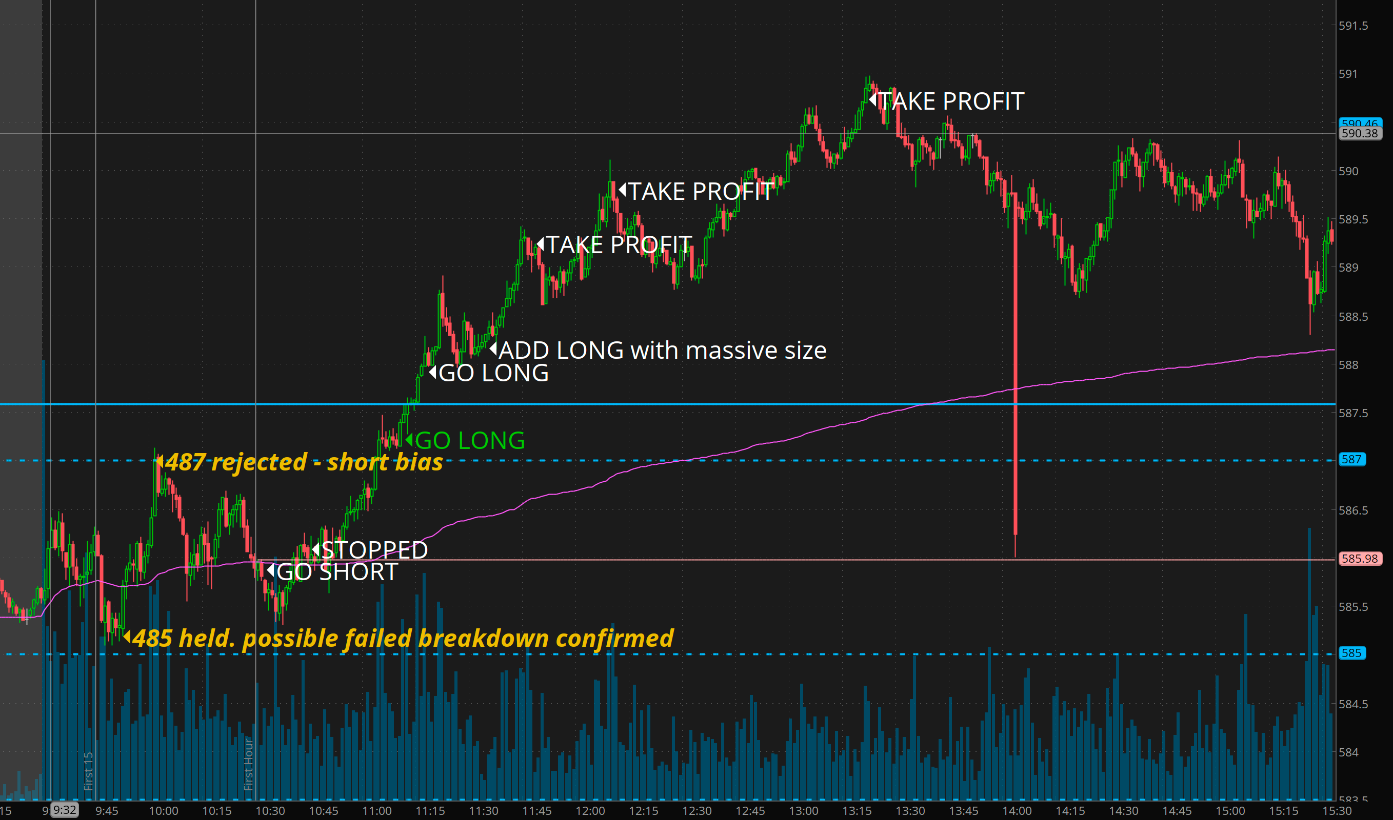 I did the right thing with shorting 485 break overnight, and the right thing when accepting the 485 reclaim was a failed breakdown and seeing 487 as upside coming.